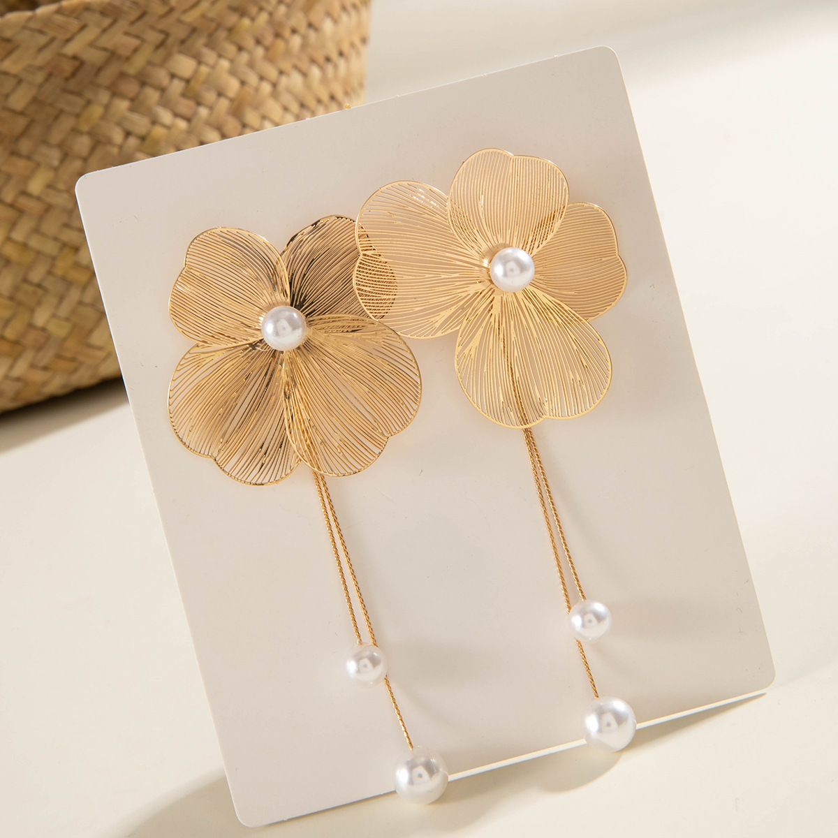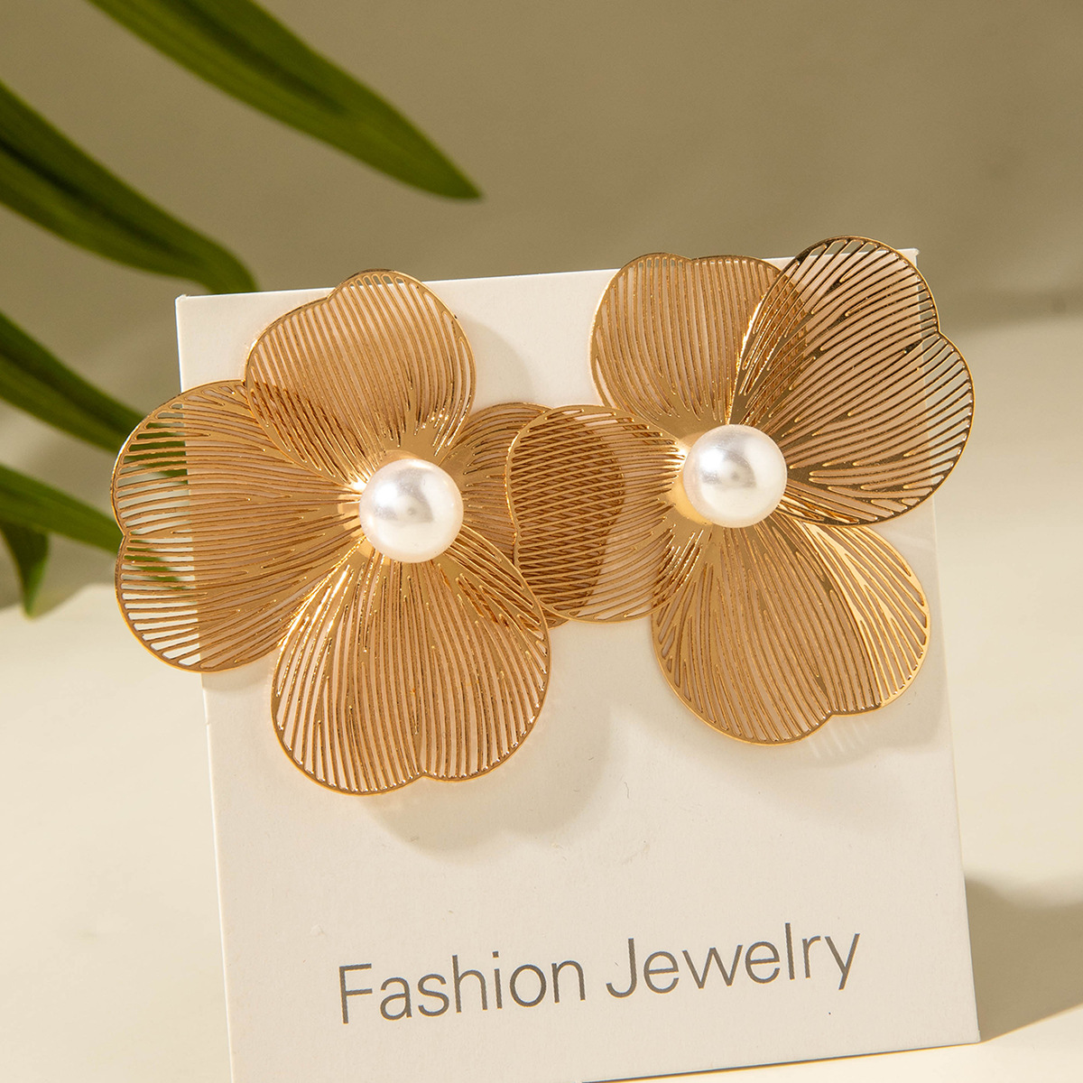 外贸热销批发夸张花卉朵银杏叶感新中式耳钉百搭花朵耳饰仿珍珠