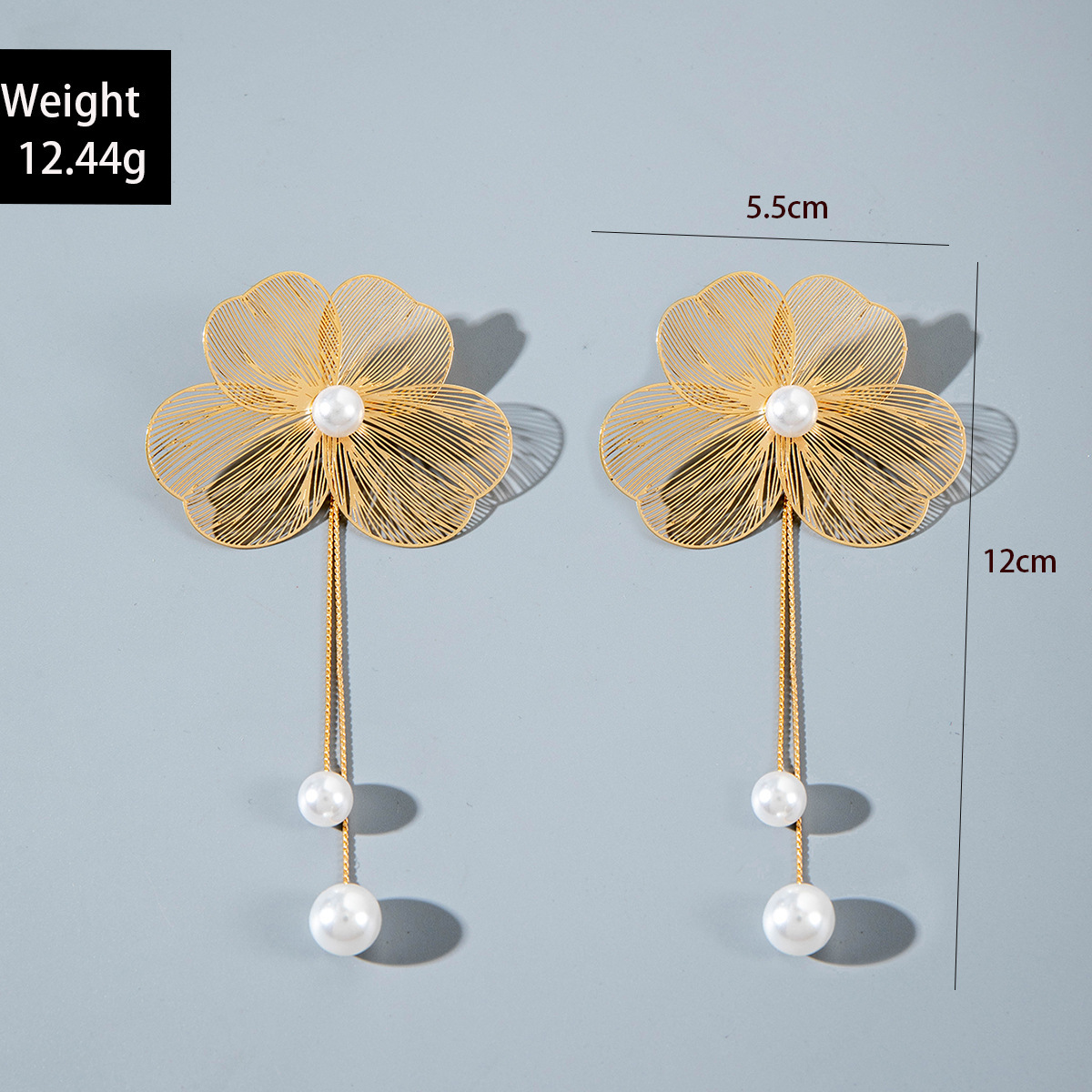 欧美跨境金属质感立体银杏叶子花朵耳钉甜酷百搭仿珍珠流苏耳饰品