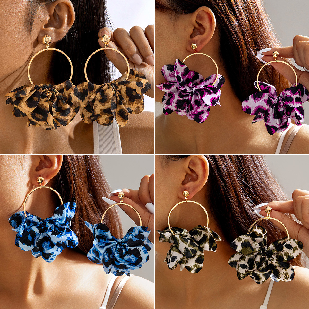 欧美跨境饰品甜酷时尚百搭设计流苏耳饰高级立体银杏叶子花朵耳钉