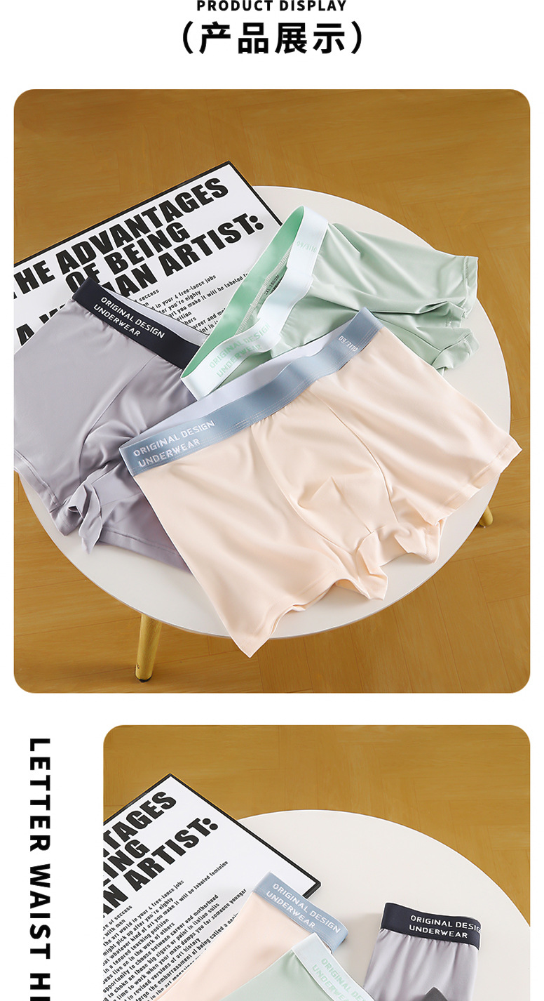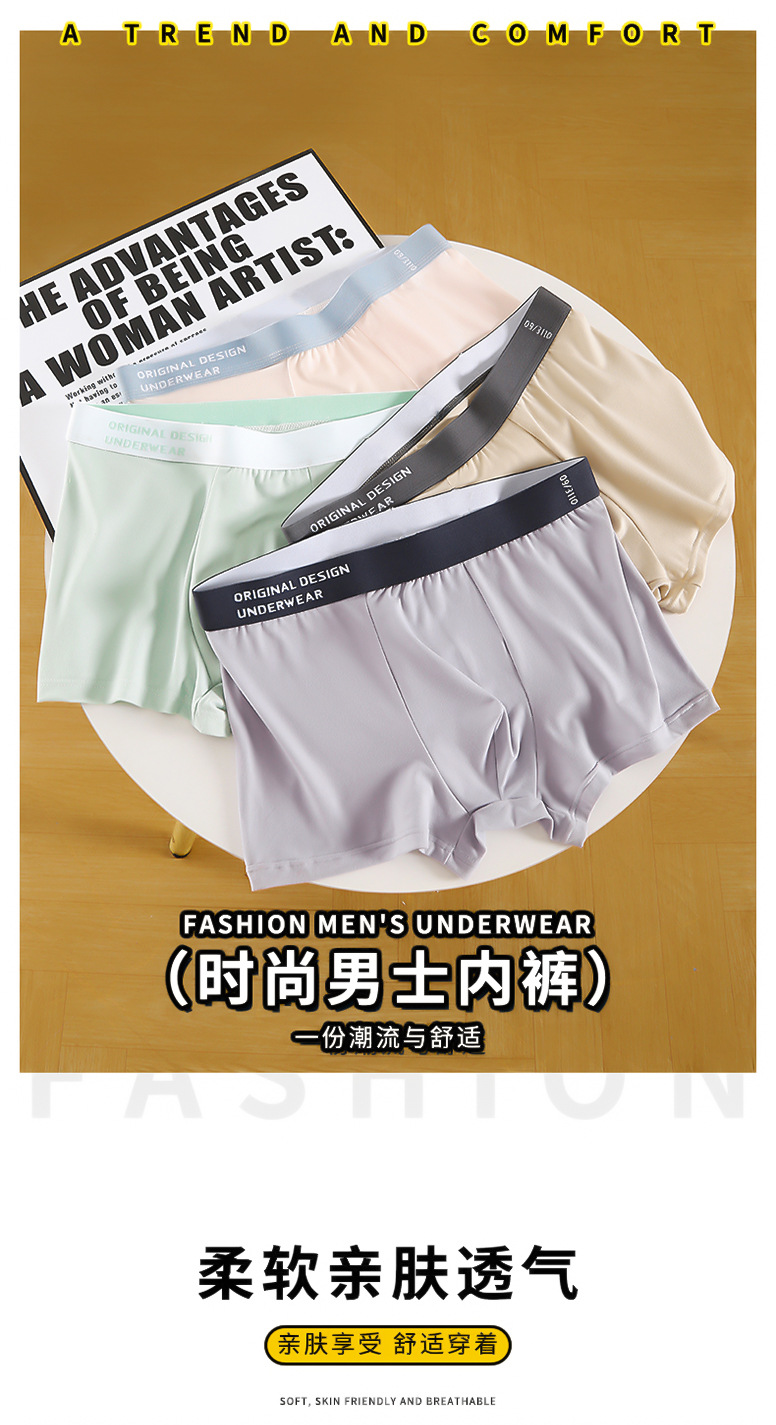シンプルで快適な肌に優しい男の子のシームレスな緩い通気性の下着メンズ夏薄い四隅ボクサー卸売