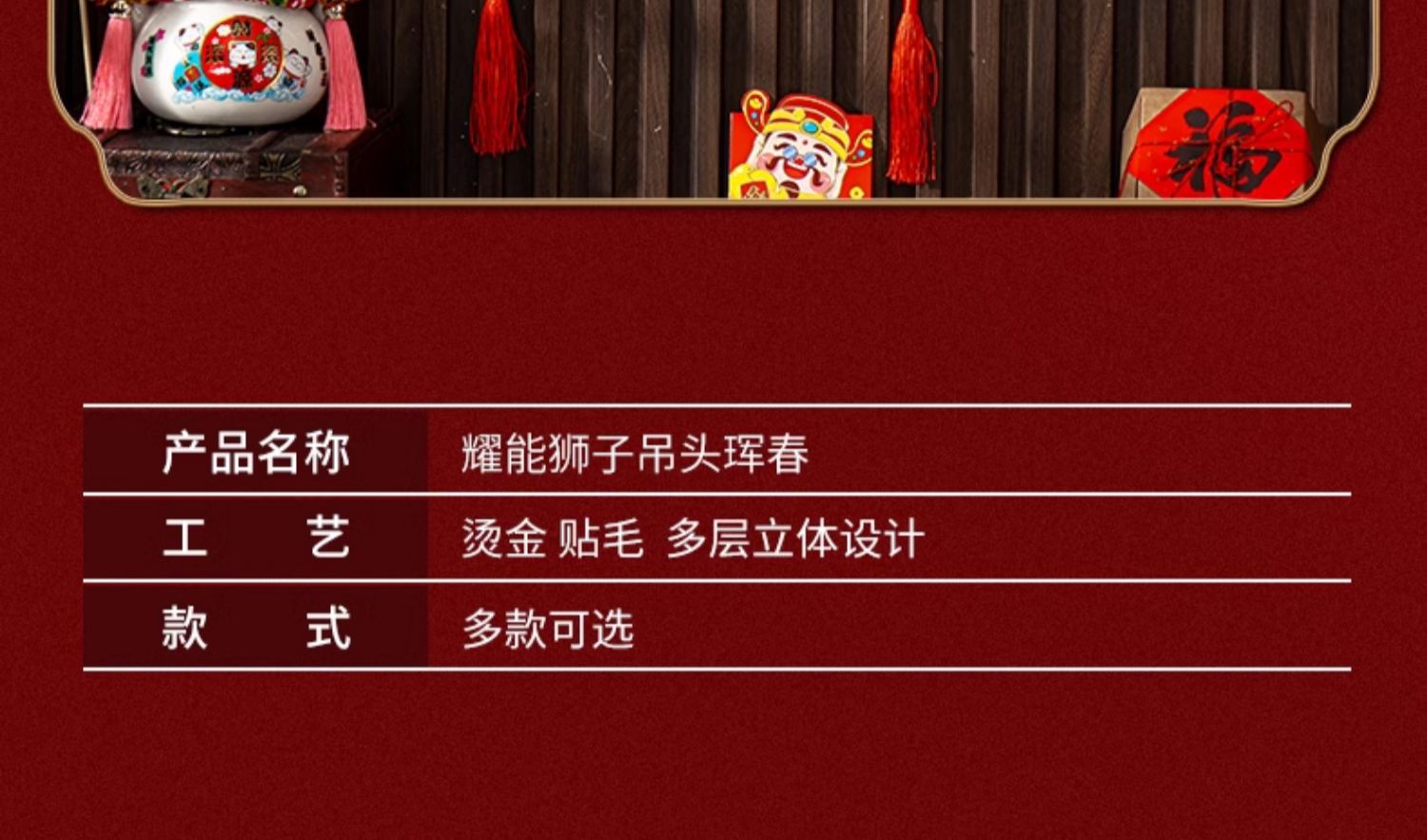 2026年獅子頭春節春聯門飾り獅子舞飾り出入平安横書き春節装飾植毛布製