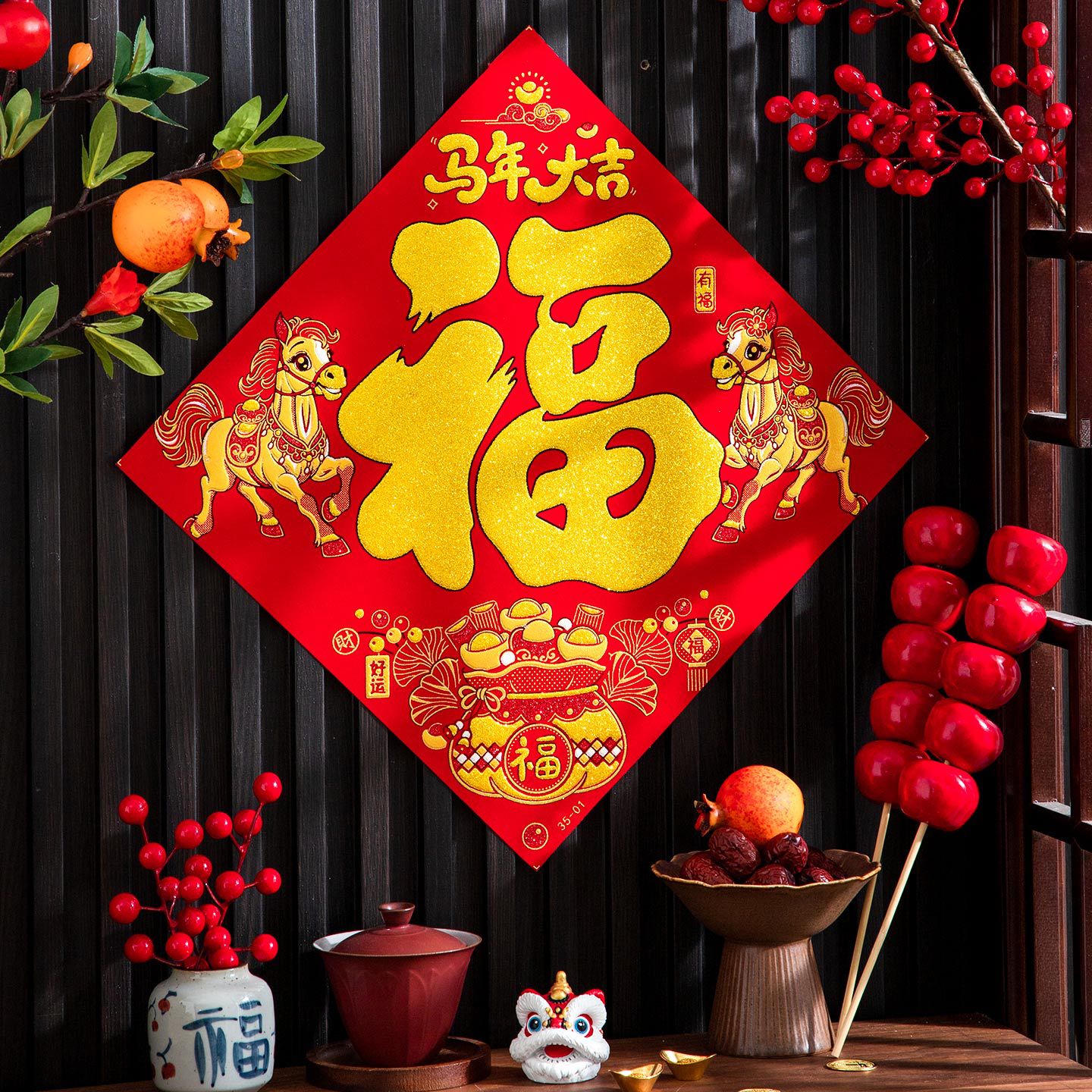 2026年馬年新作春節対句、農村工場の門用大型ベルベット生地の粘着式春節対句