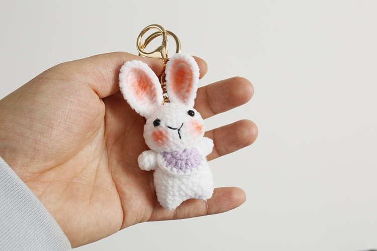 超萌え手編みミッフィーウサギ人形かわいいウサギのキーホルダー毛糸鉤織ウサギのストラップ完成品