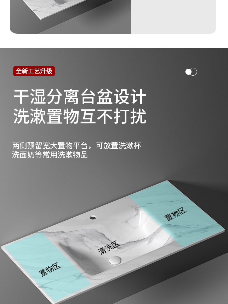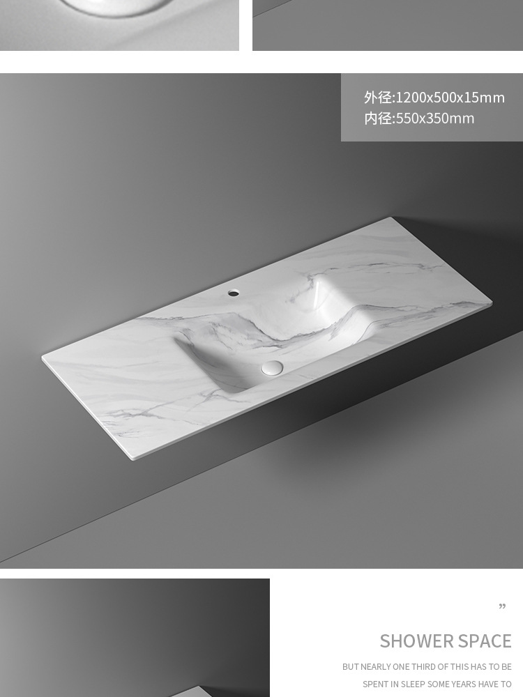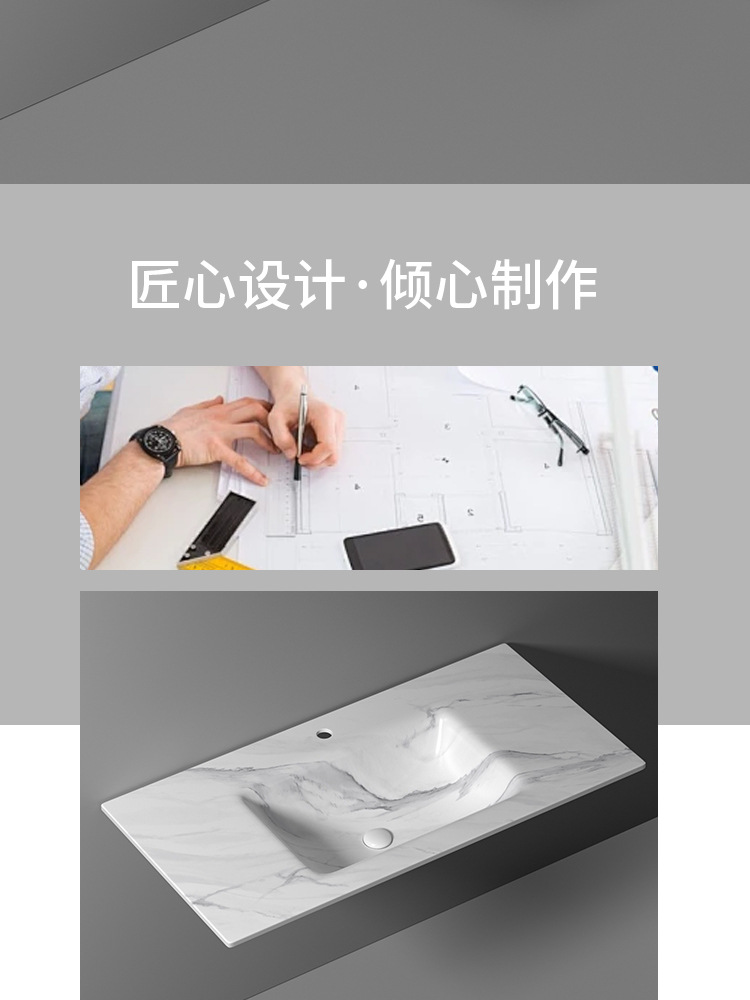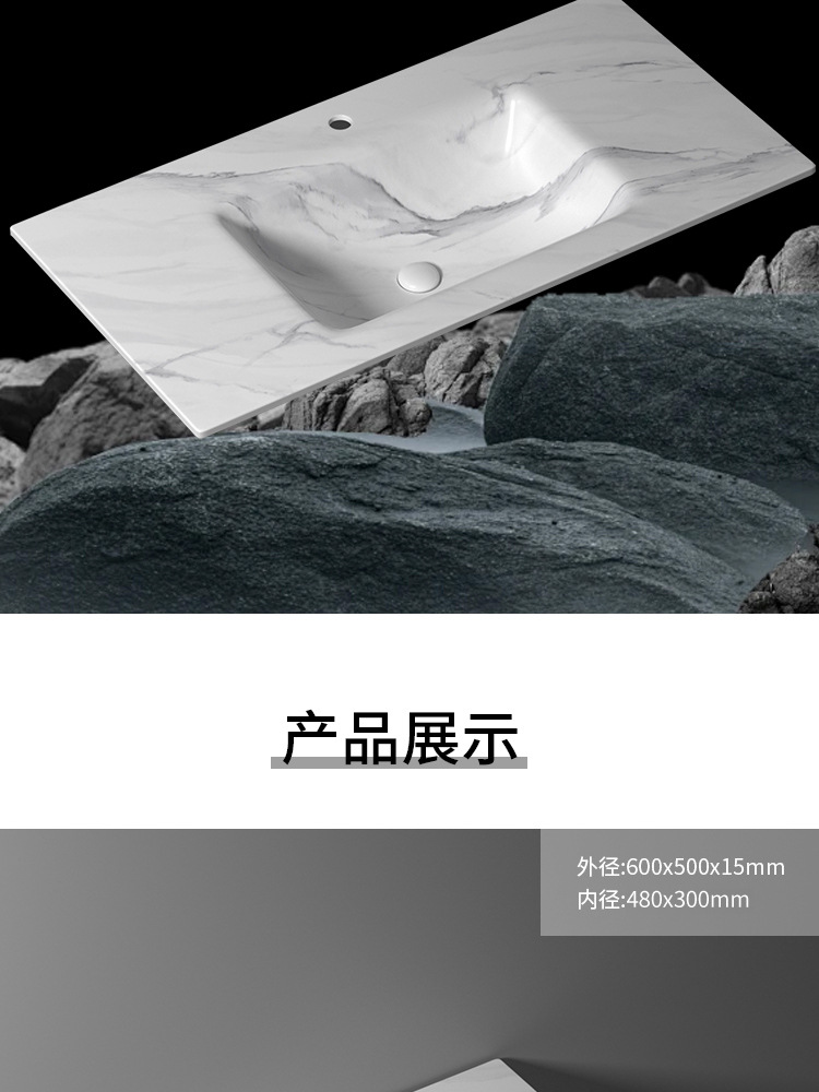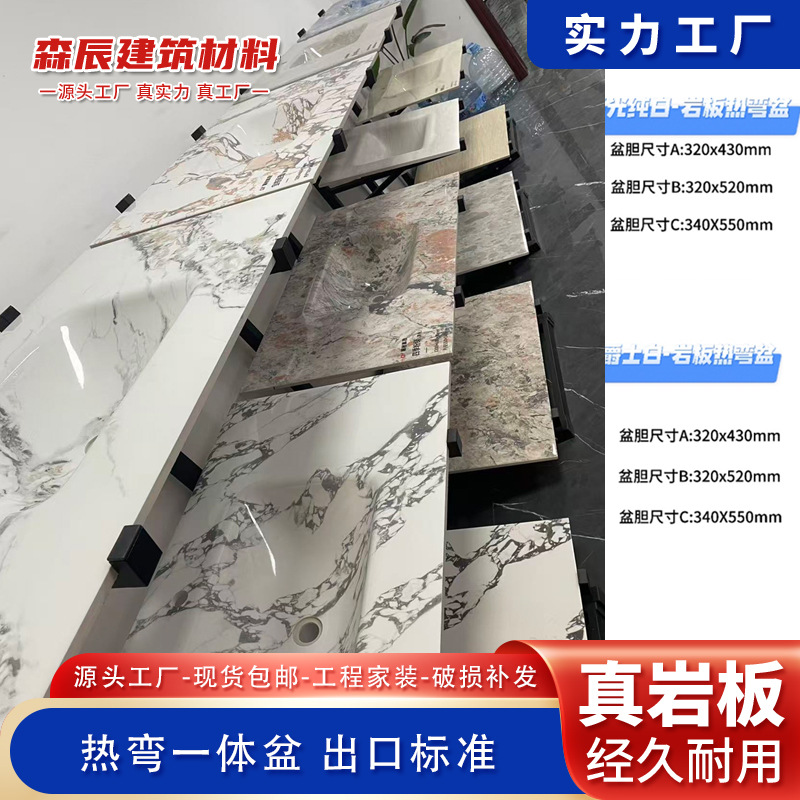无缝岩板洗脸盆热弯一体浴室柜台盆无拼接岩板洗手台中盆非标切角