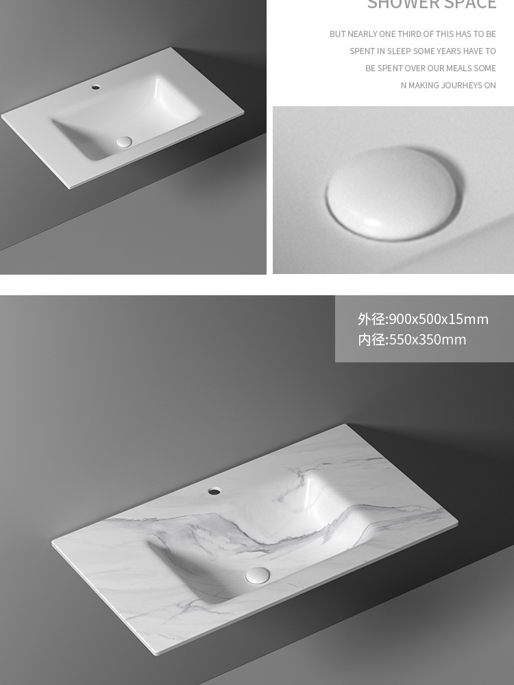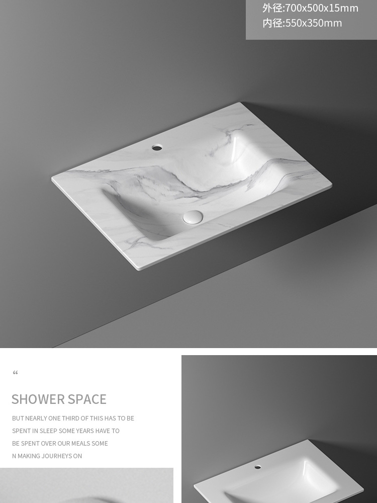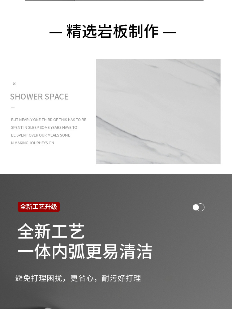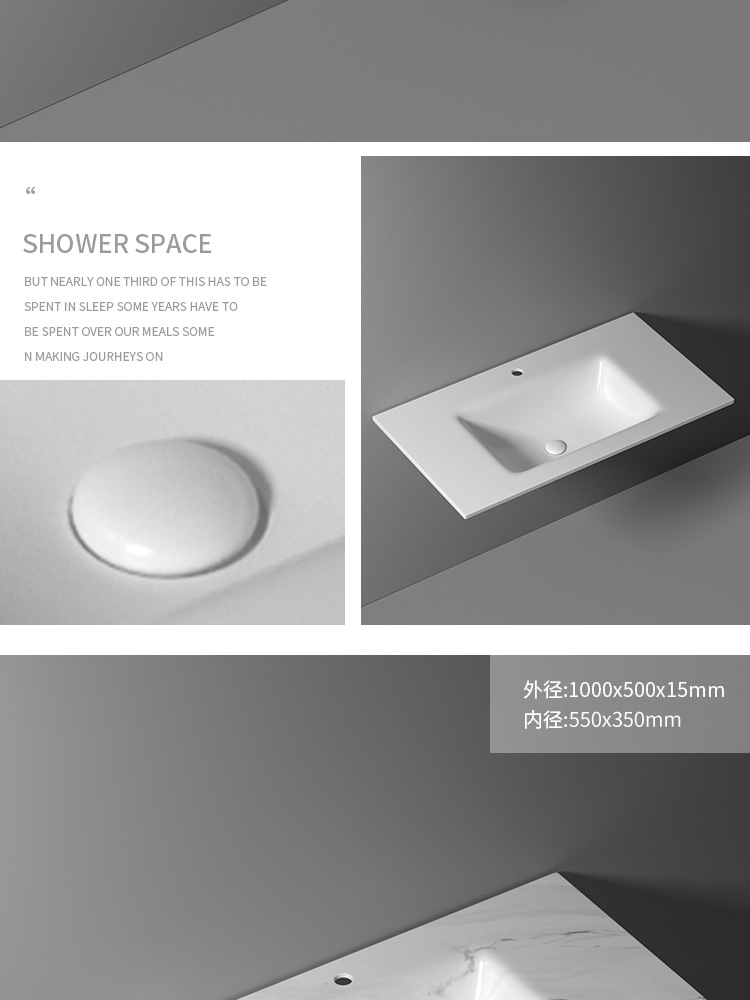 无缝岩板洗脸盆热弯一体浴室柜台盆无拼接岩板洗手台中盆非标切角