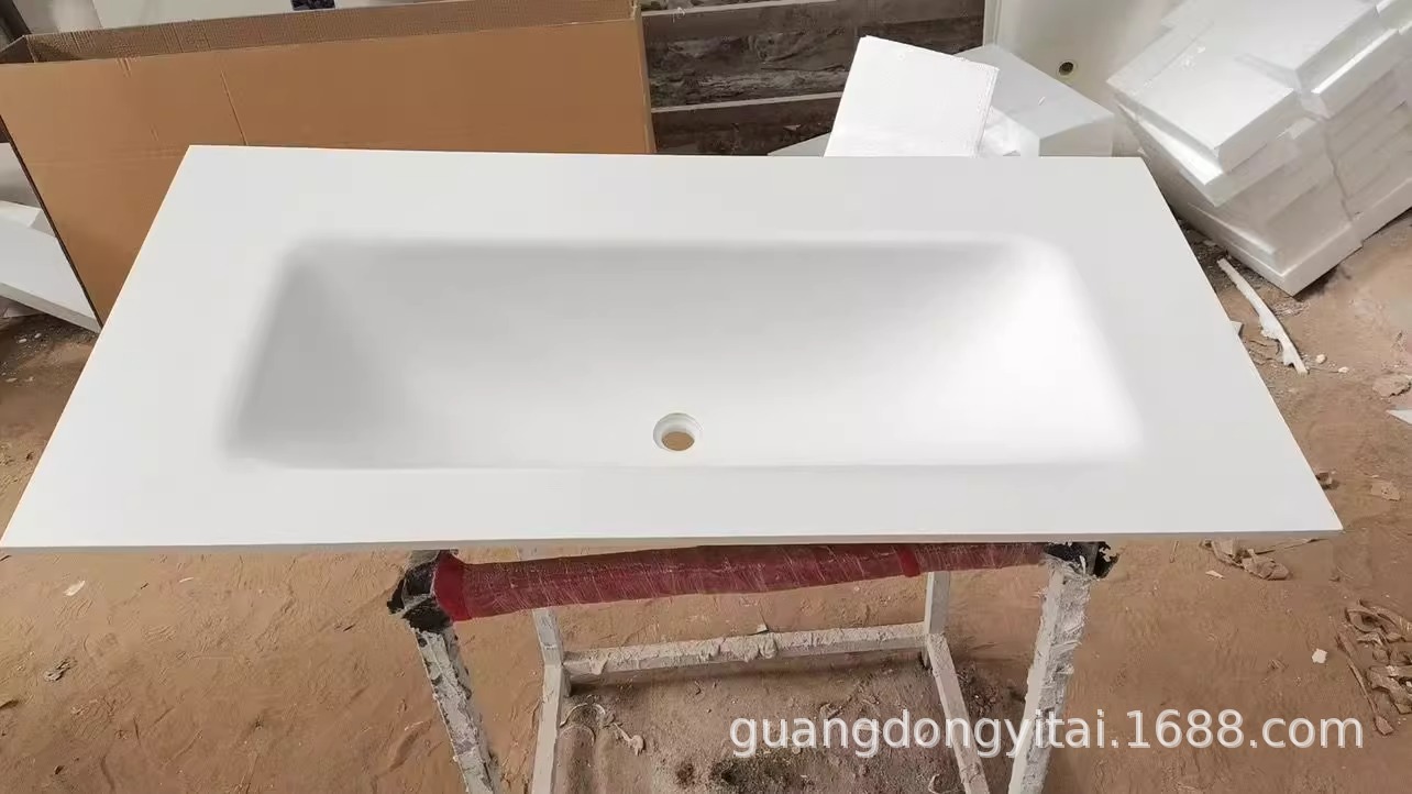 輸出向け外国貿易ホテル用岩板シームレス洗面台、コーナーカットアパート壁掛け一体型洗面台、軽奢洗面台