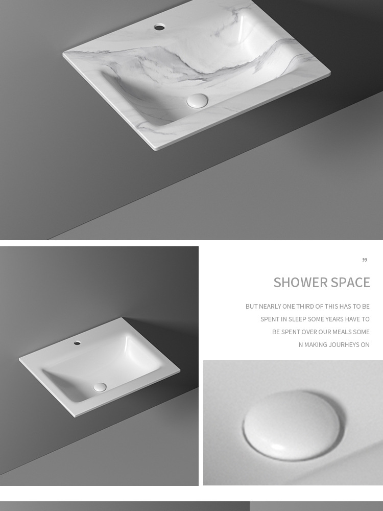 セラミック一体型洗面器 薄縁洗面器 半埋め込み式洗面器 浴室用セラミック洗面器 洗面台 洗面ボウル
