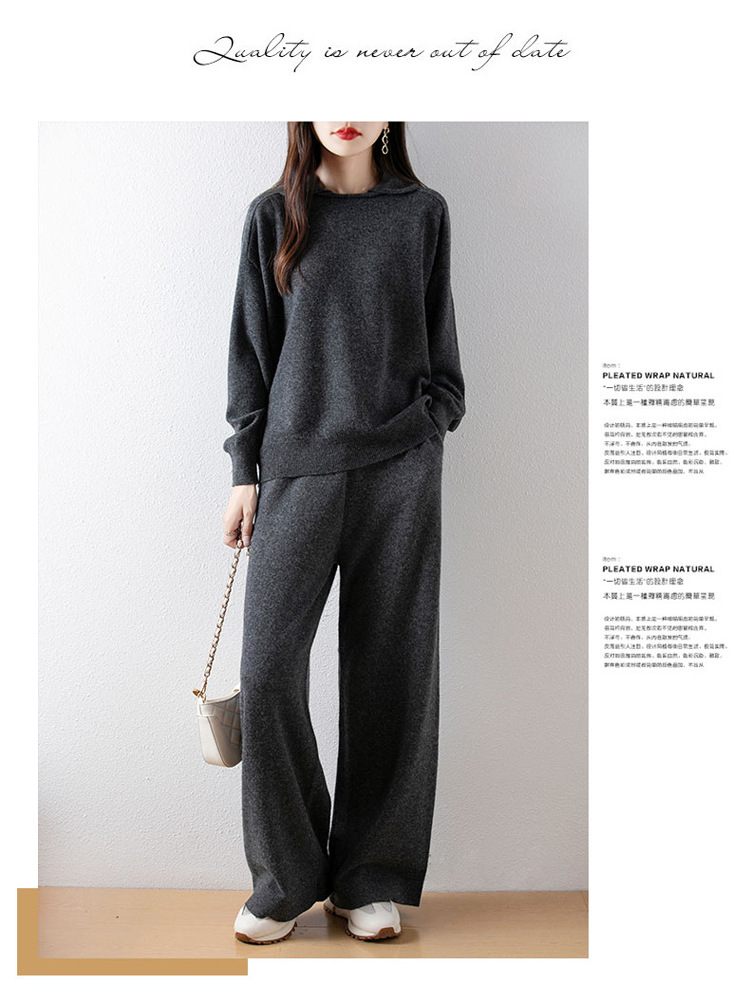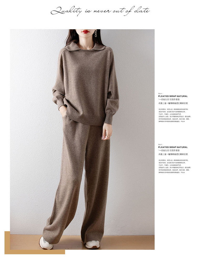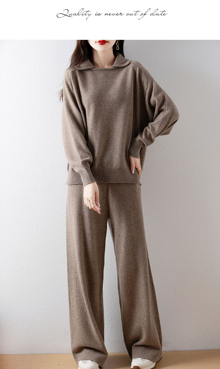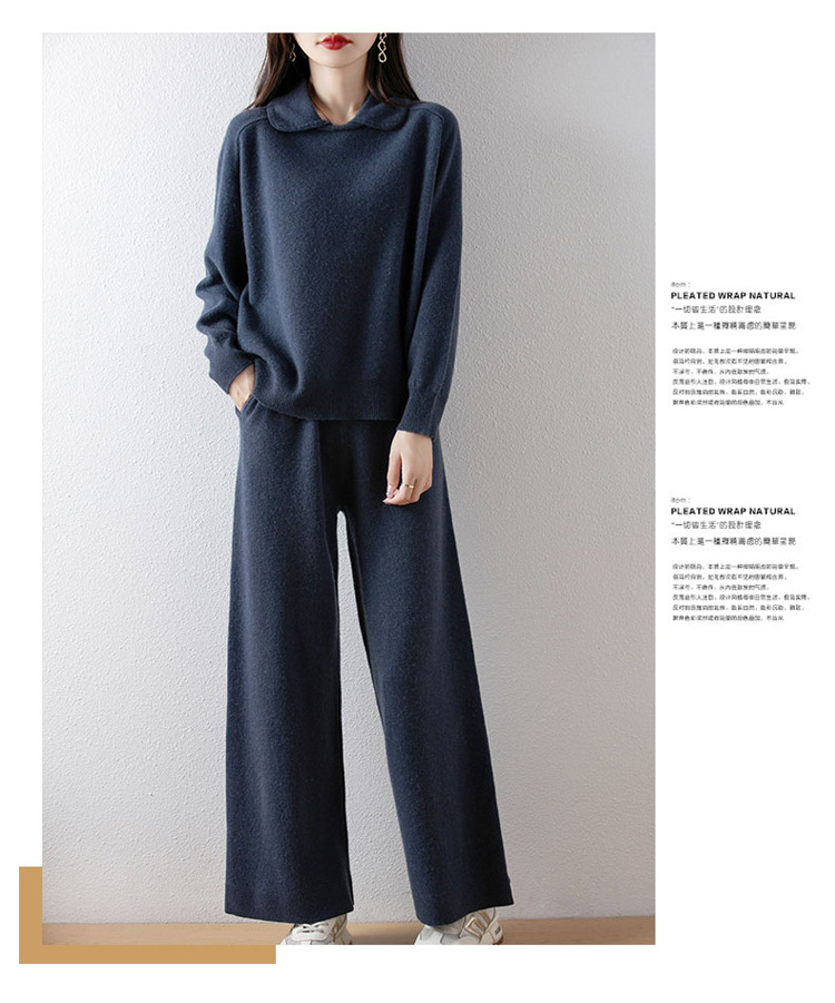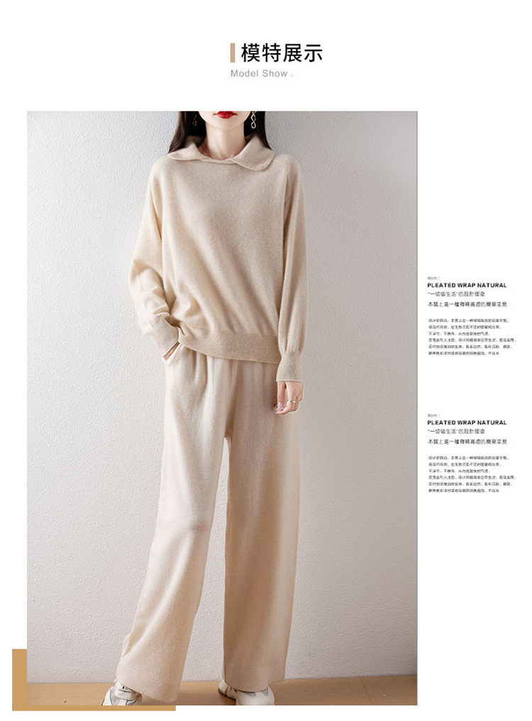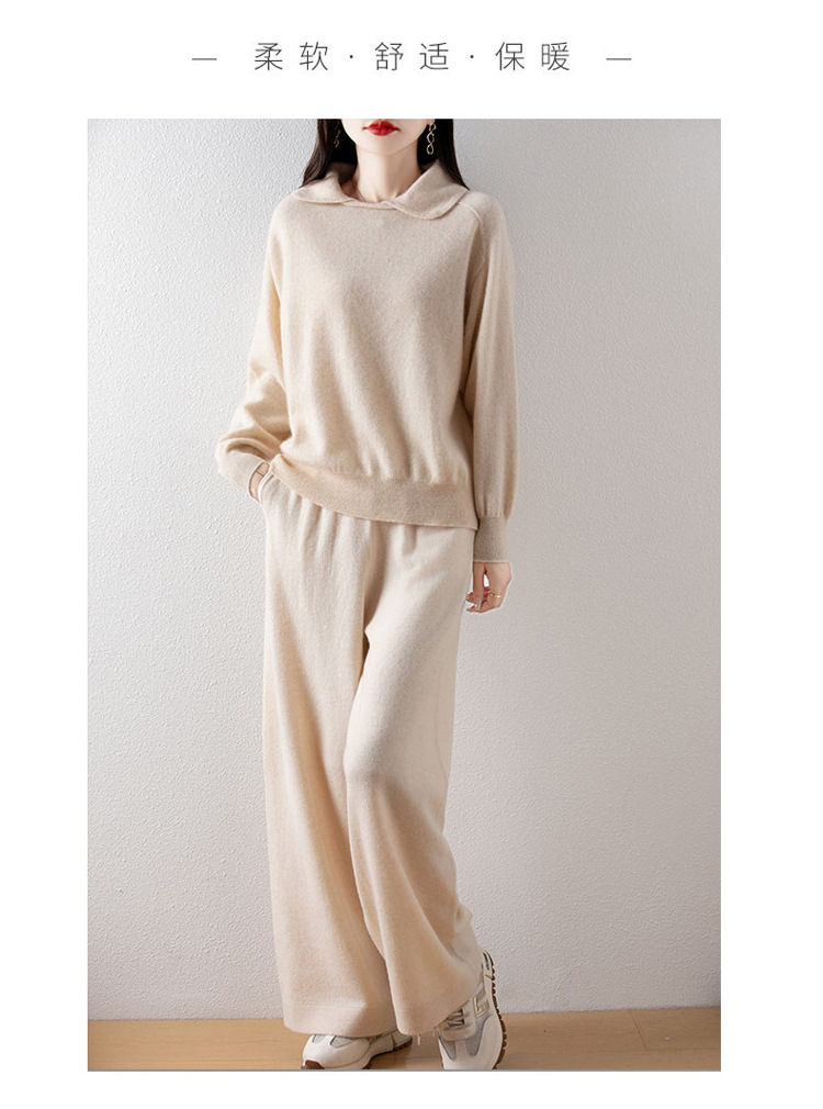 25秋冬新款羊绒针织套装女加厚圆领毛衣宽松阔腿裤时尚羊毛两件套