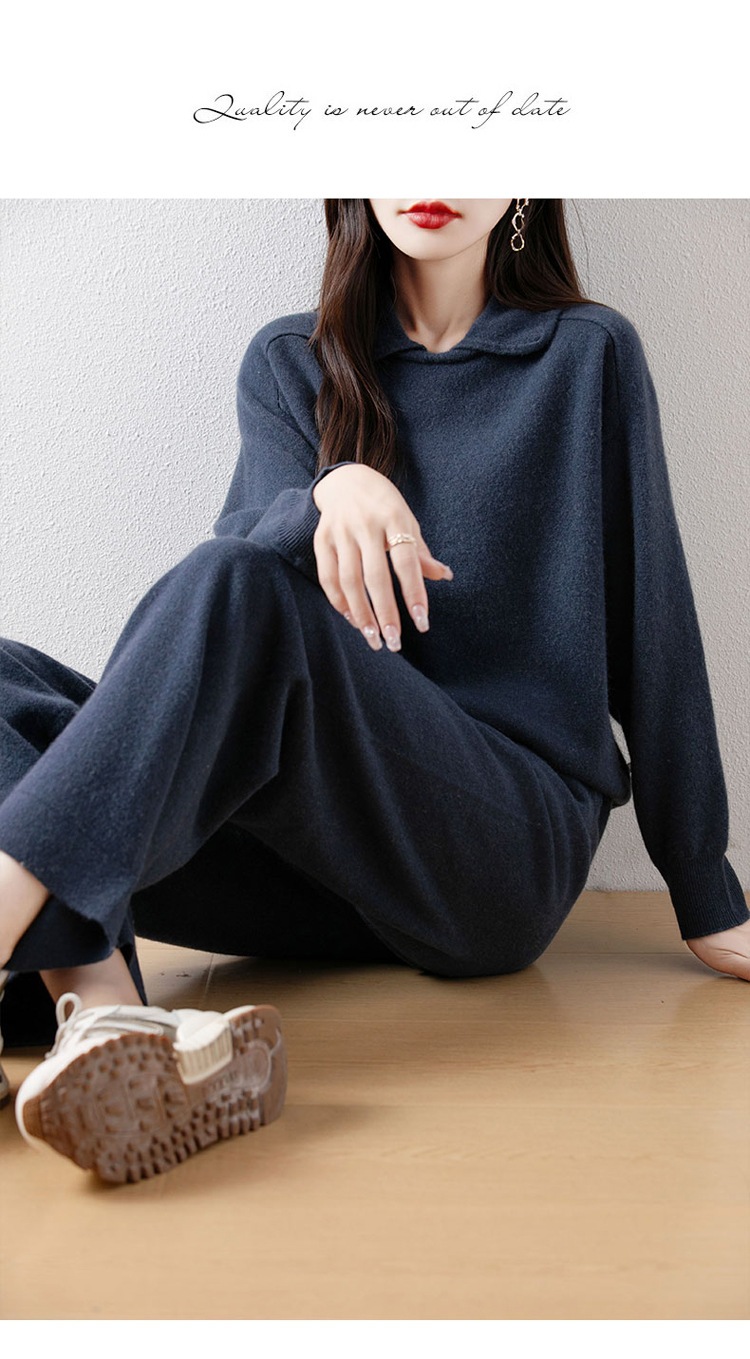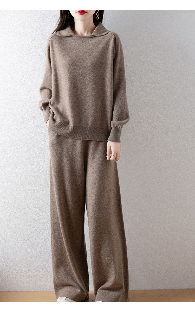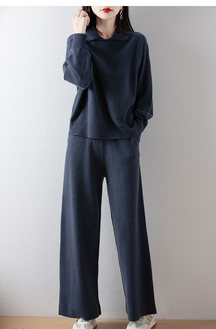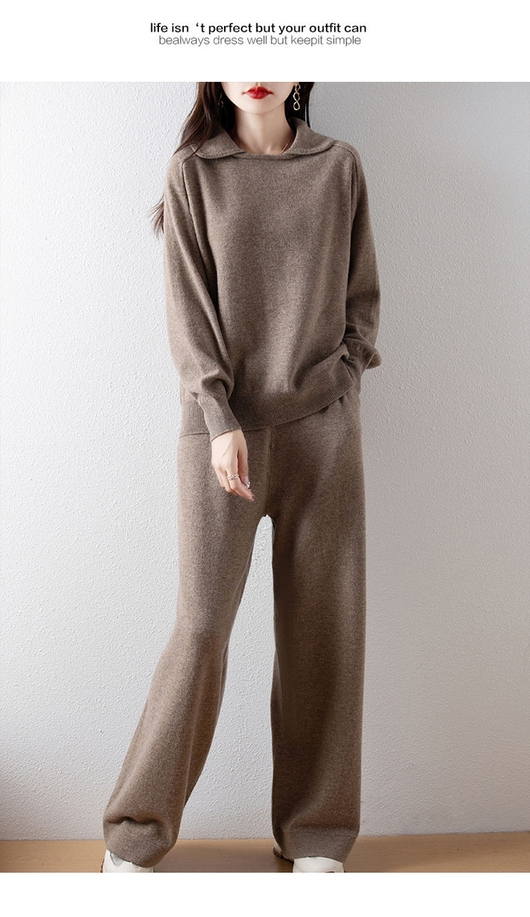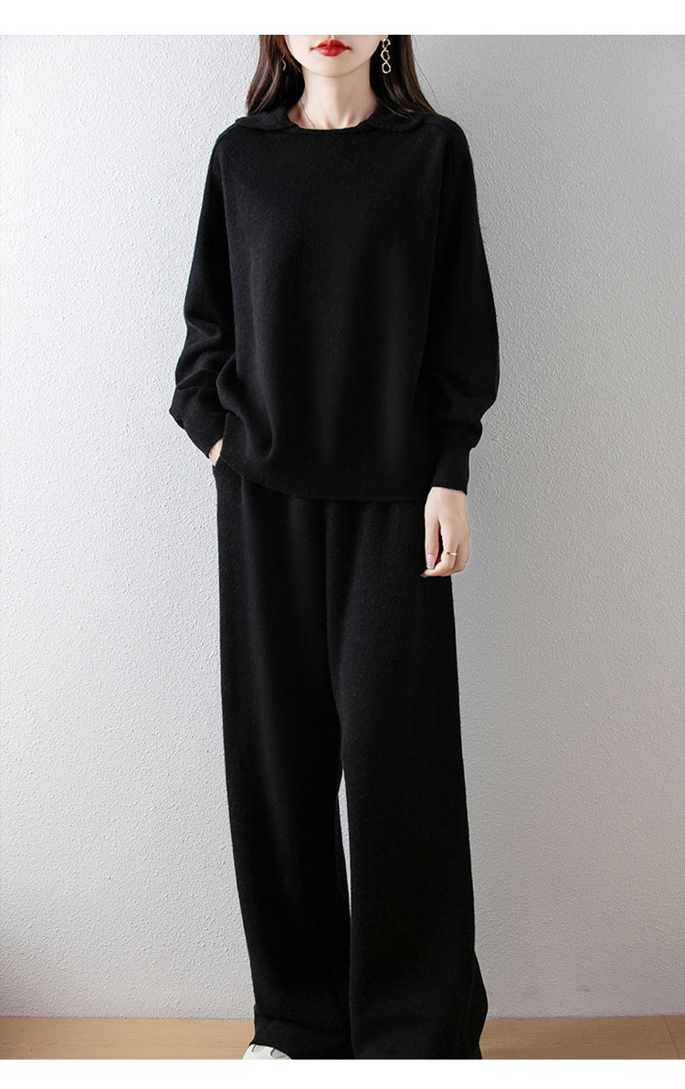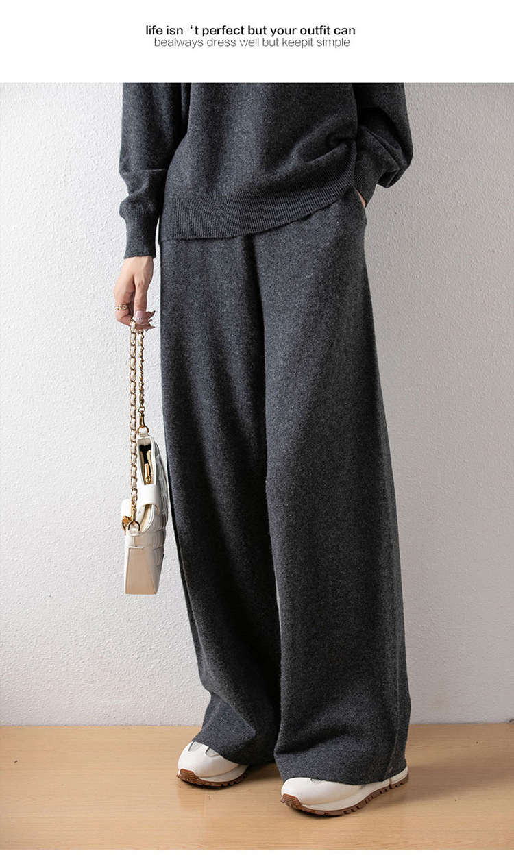 25秋冬新款羊绒针织套装女加厚圆领毛衣宽松阔腿裤时尚羊毛两件套