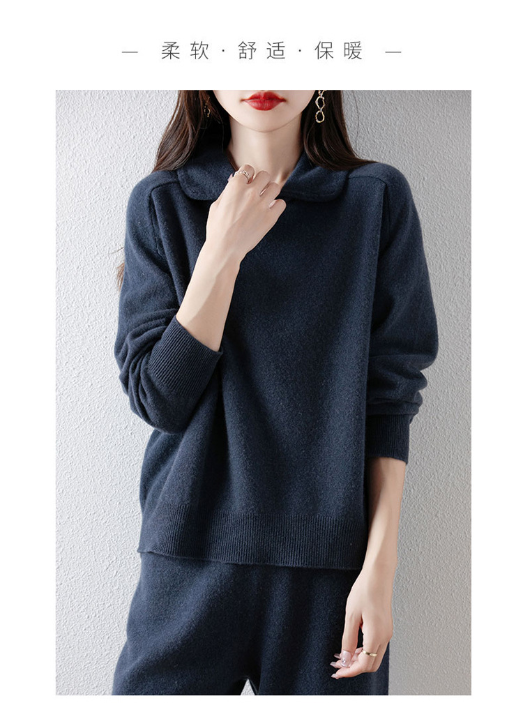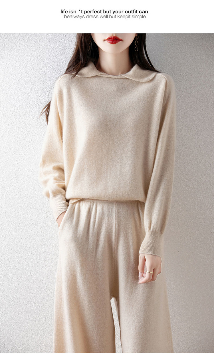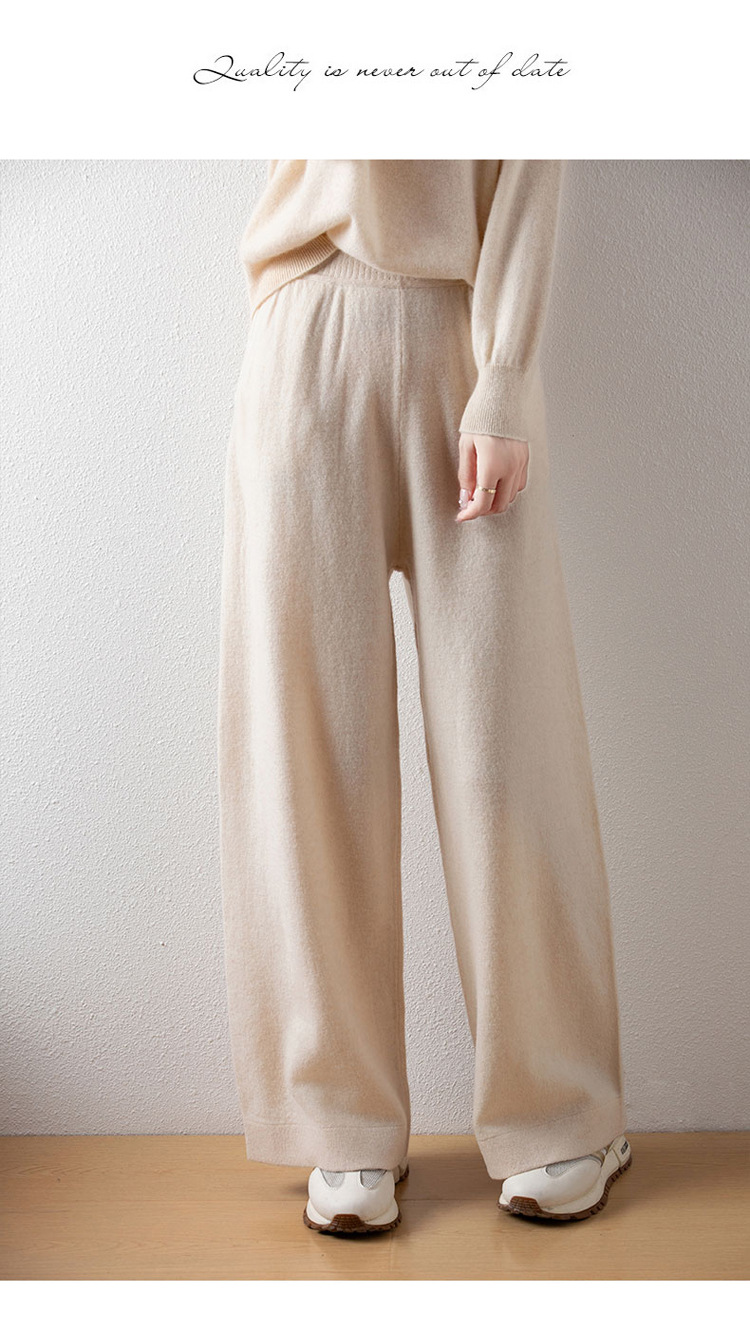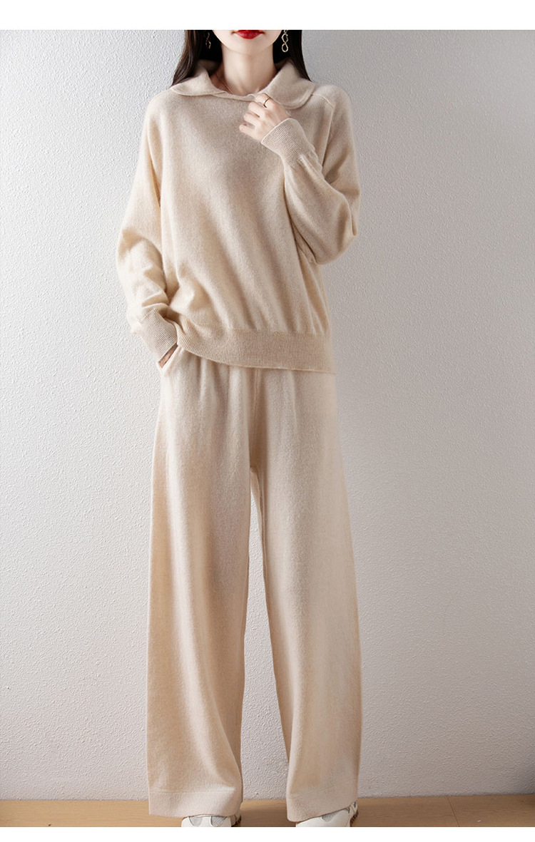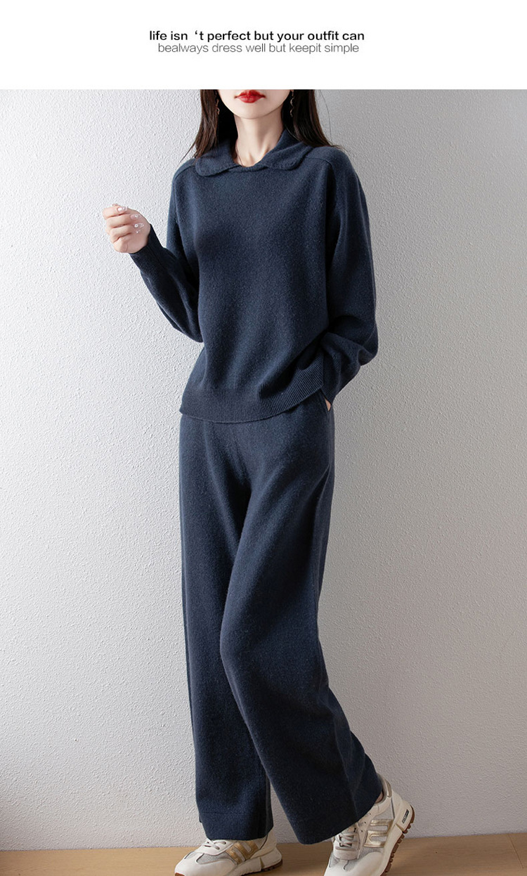 25秋冬新款羊绒针织套装女加厚圆领毛衣宽松阔腿裤时尚羊毛两件套