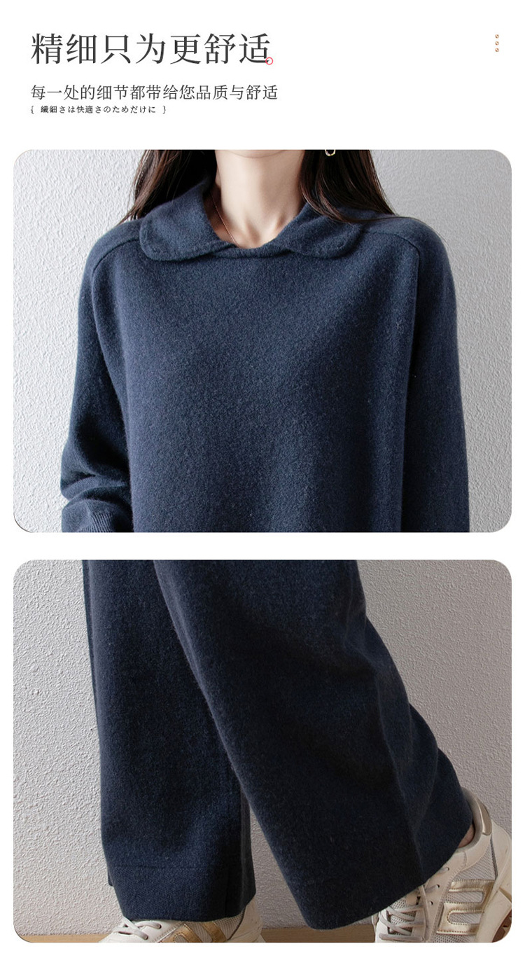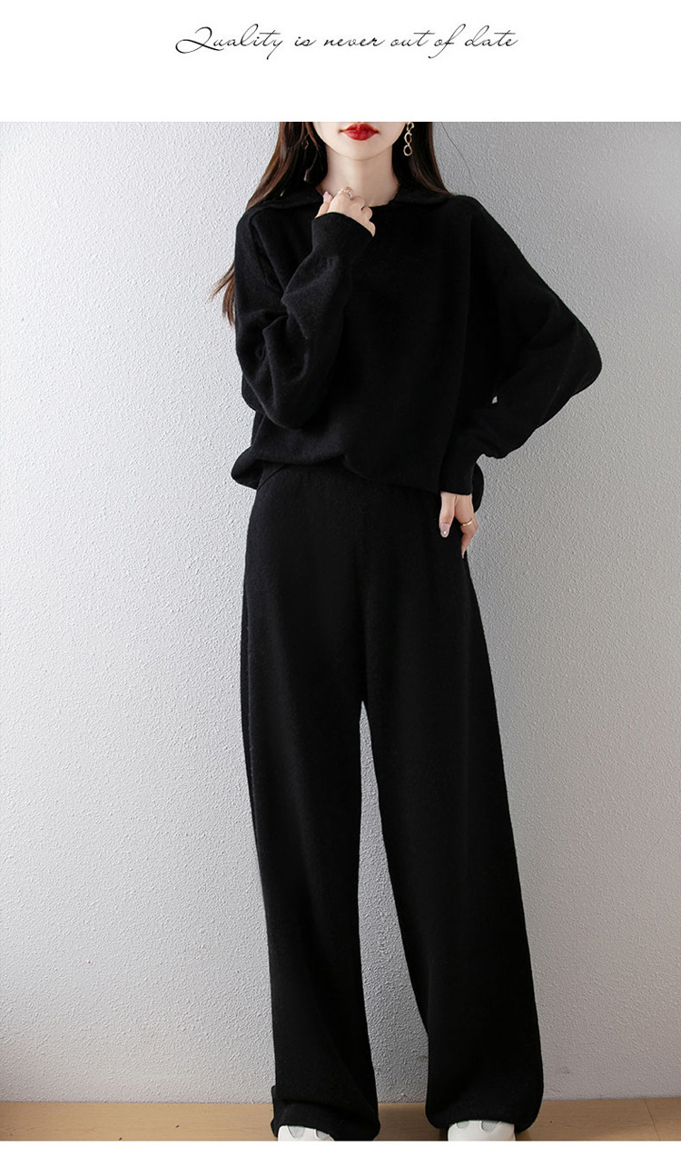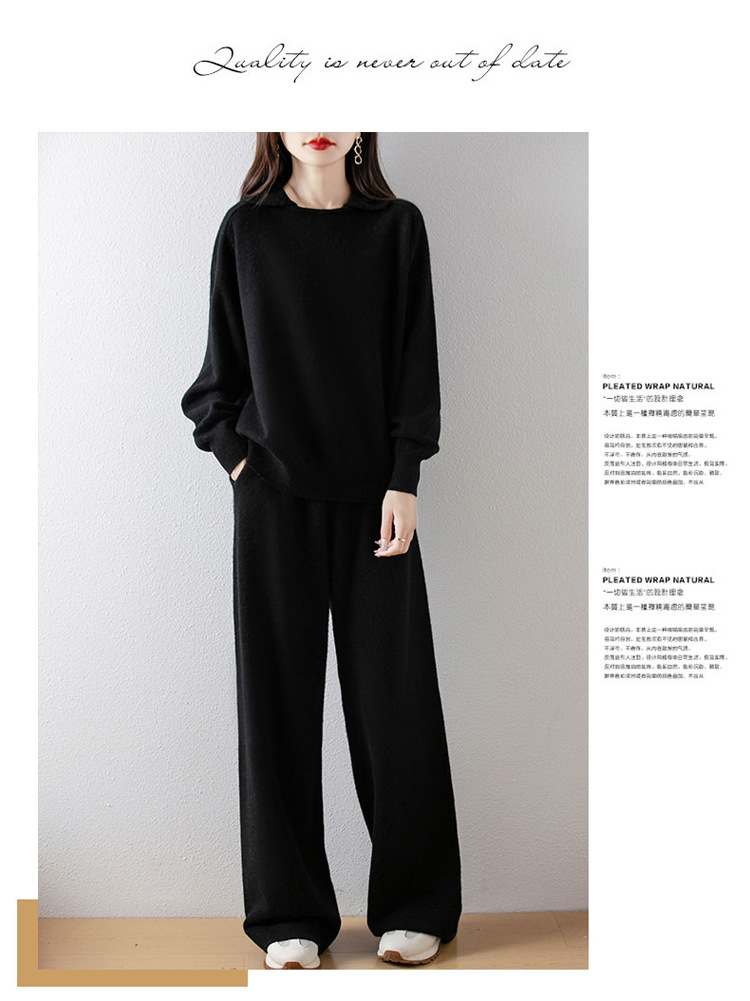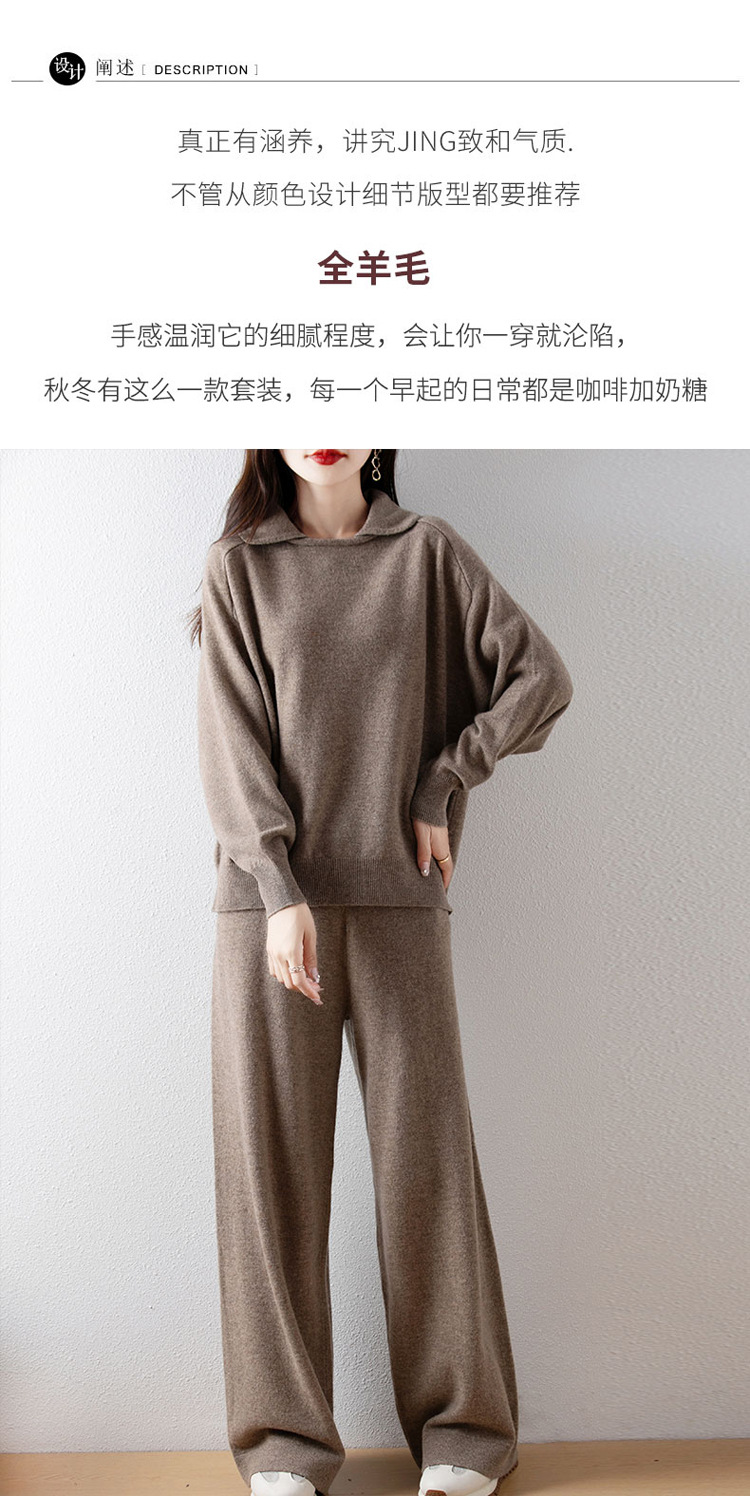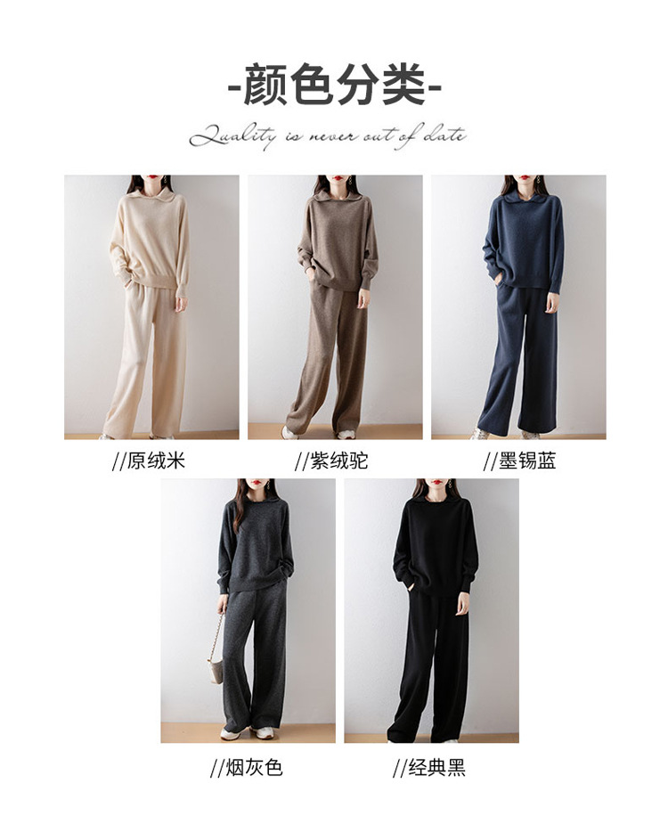 2025年秋冬新款半高领纯羊毛慵懒风针织衫长袖纯色高腰阔腿裤两件