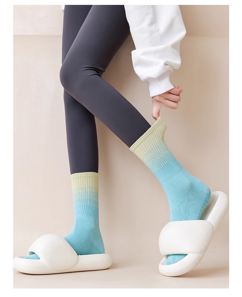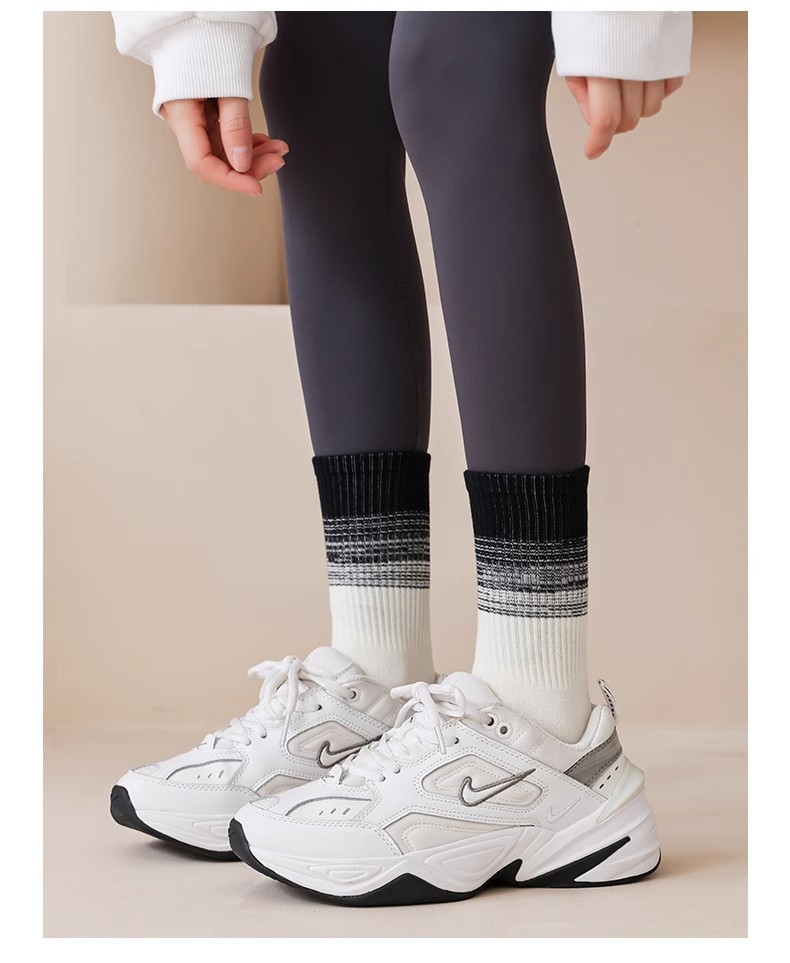 25新作 ヒールに布ラベル付きの紺色ソックス レディース コントラストカラー 秋冬 ミドル丈ソックス 綿100% ストライプ パイルソックス 女性用ソックス