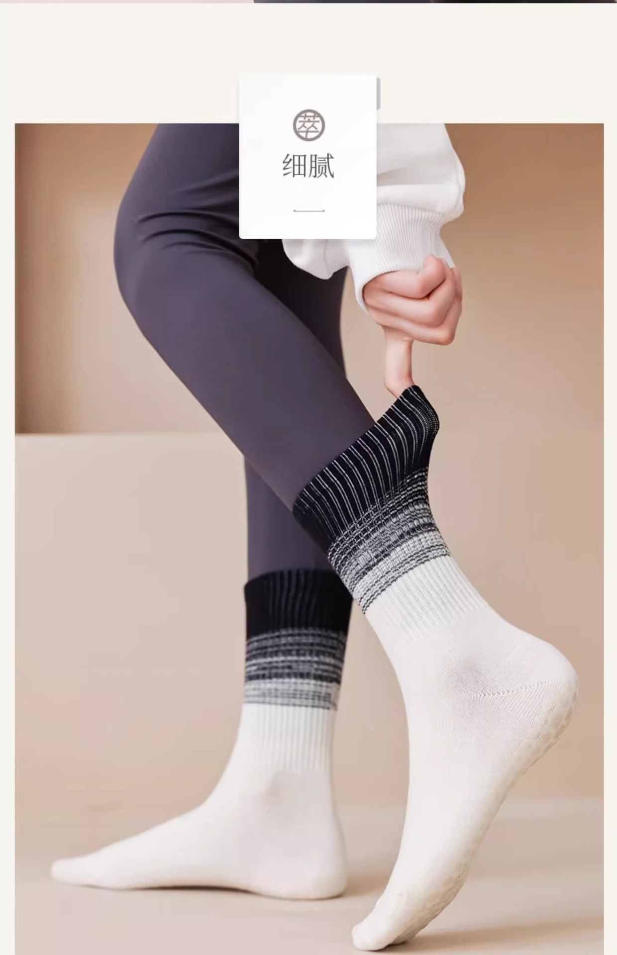 ヨガの靴下の双羅口の中筒の靴下の綿の滑り止めのシリカゲルの室内のフィットネスの女性の靴下のプラティの運動の女性のストッキング