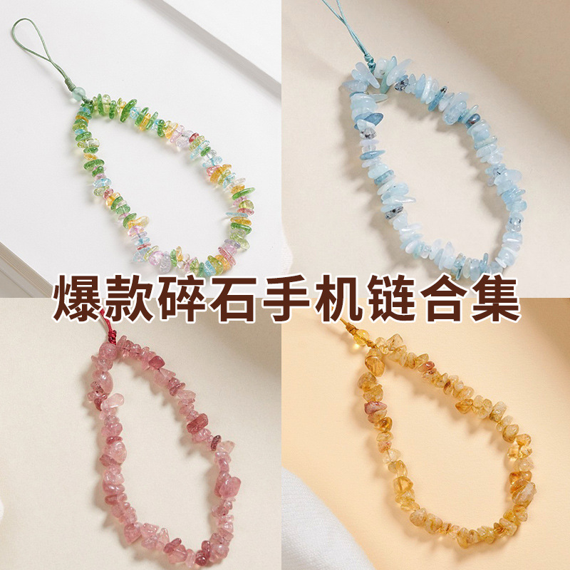 天然の黄水晶の携帯電話のひもの女性の財源の水晶の砂利の短いタイプの手首のひもは飾りを掛けて携帯電話のチェーンのペンダントをなくします。