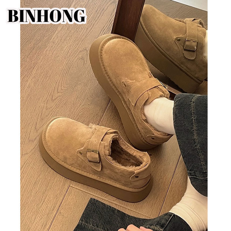 厚底勃肯鞋女冬2025新款加绒保暖一脚蹬雪地靴保暖博肯棉鞋毛毛鞋