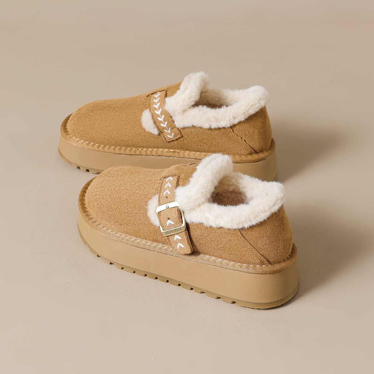 软皮版~厚底加绒勃肯鞋百搭一脚蹬毛毛鞋雪地靴小个子休闲棉鞋女