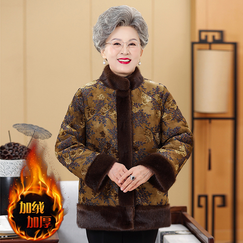 奶奶棉衣冬装中老年人加绒加厚外套女妈妈保暖棉服老太太洋气棉袄