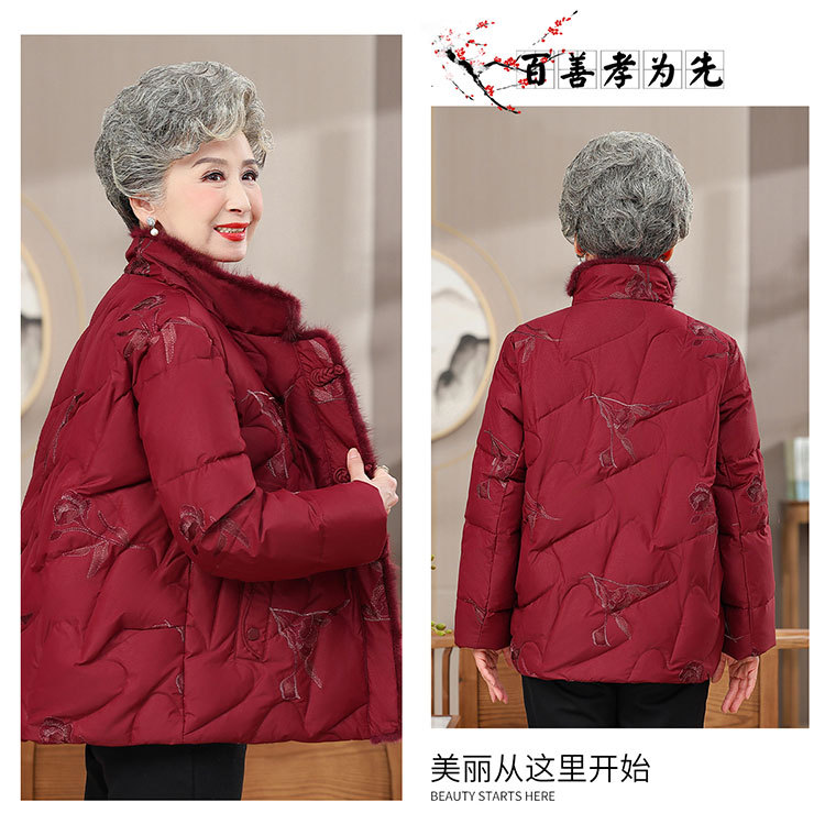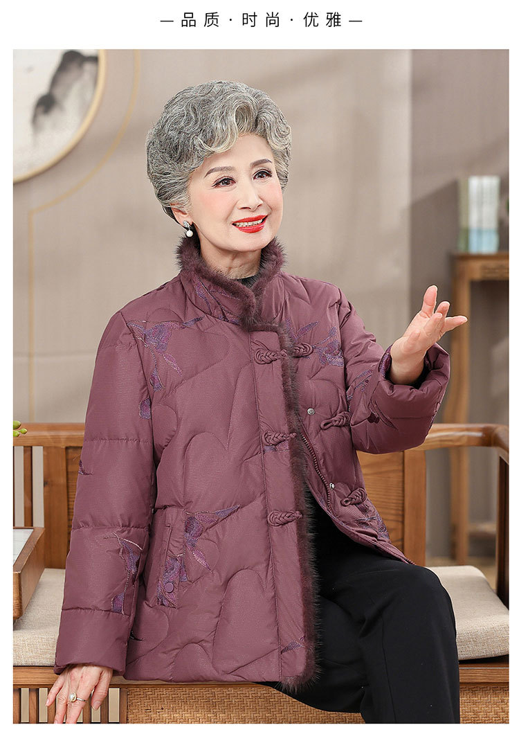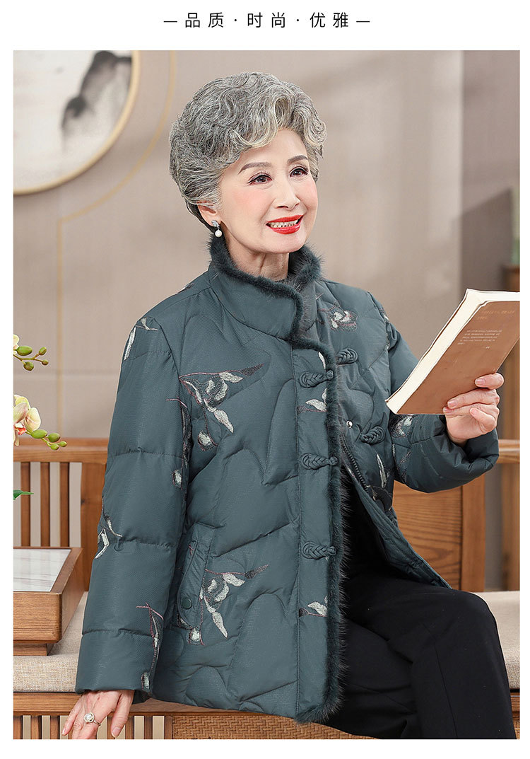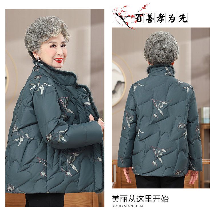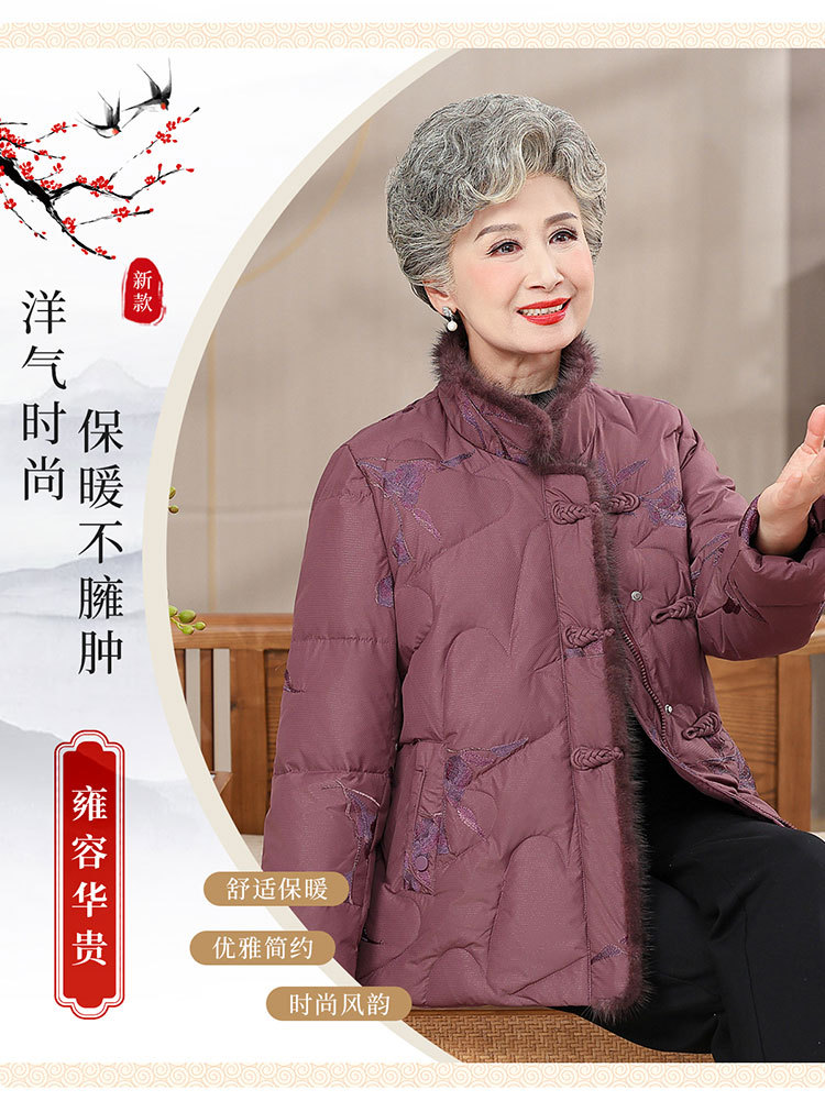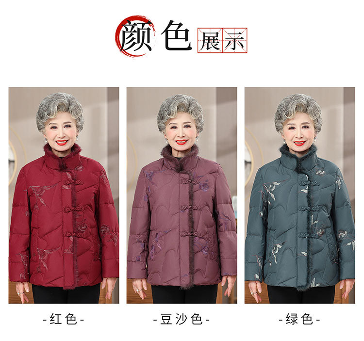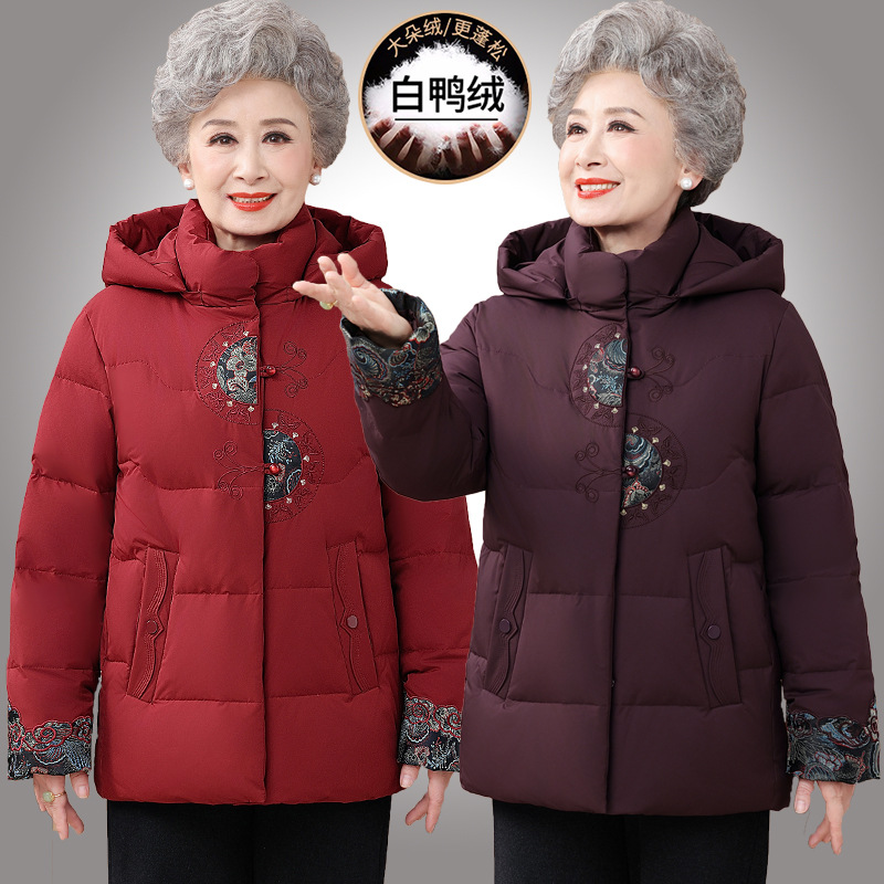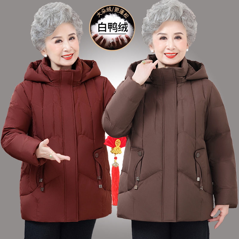 中老年人羽绒服女老太太短款洋气加厚妈妈冬装奶奶白鸭绒连帽外套