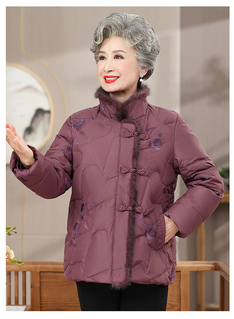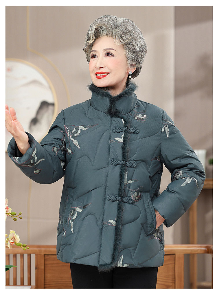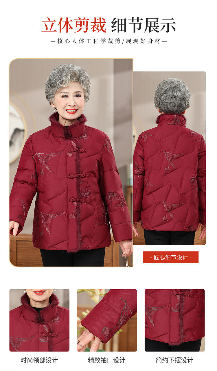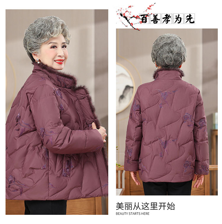 中高年のダウンジャケットの女性のショートタイプの60歳のお母さんの冬服の新型の小さいおばあちゃんの白鴨の国風のコート