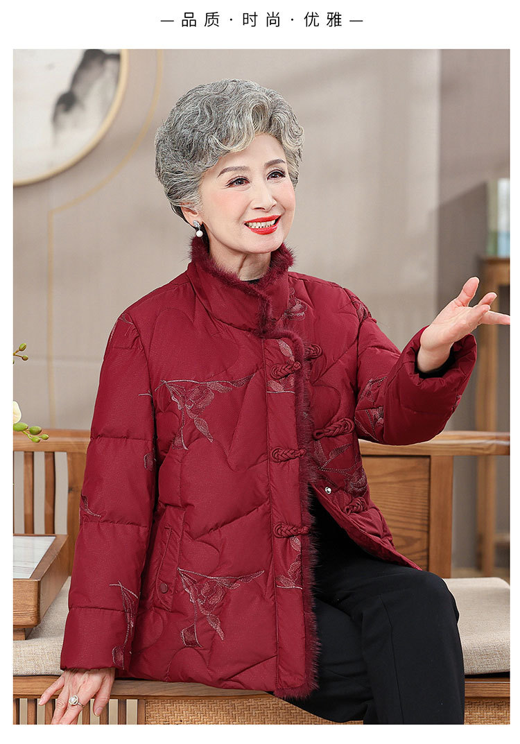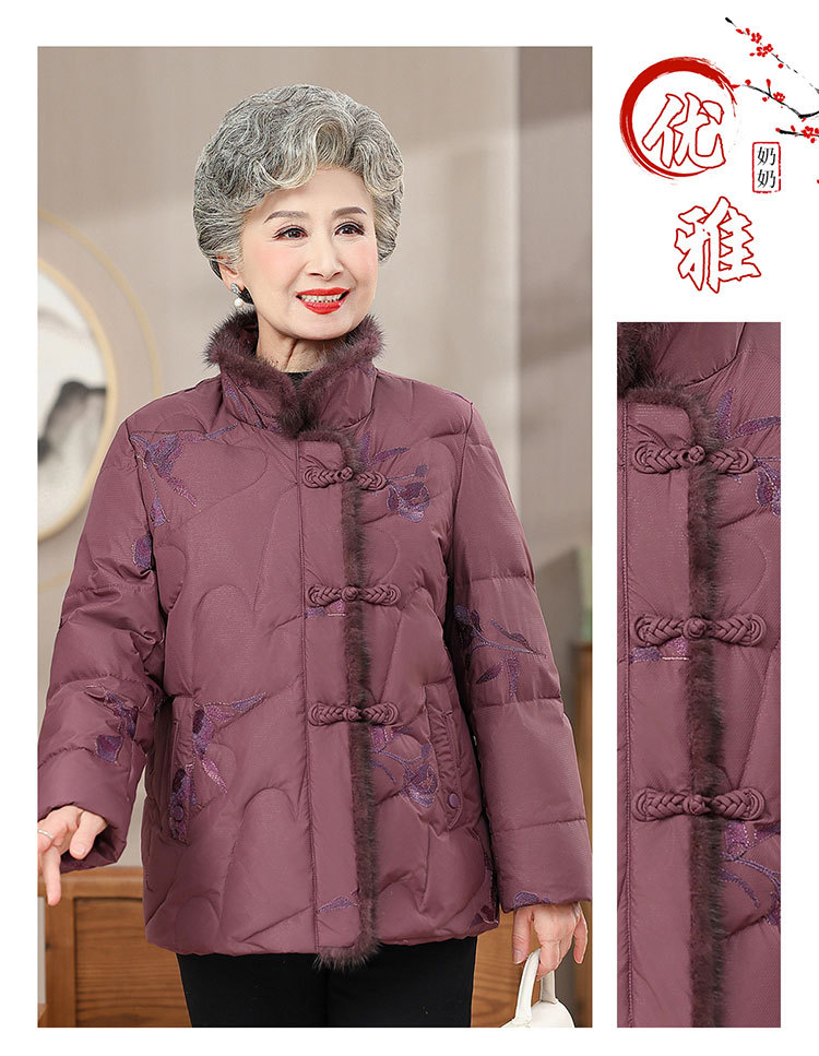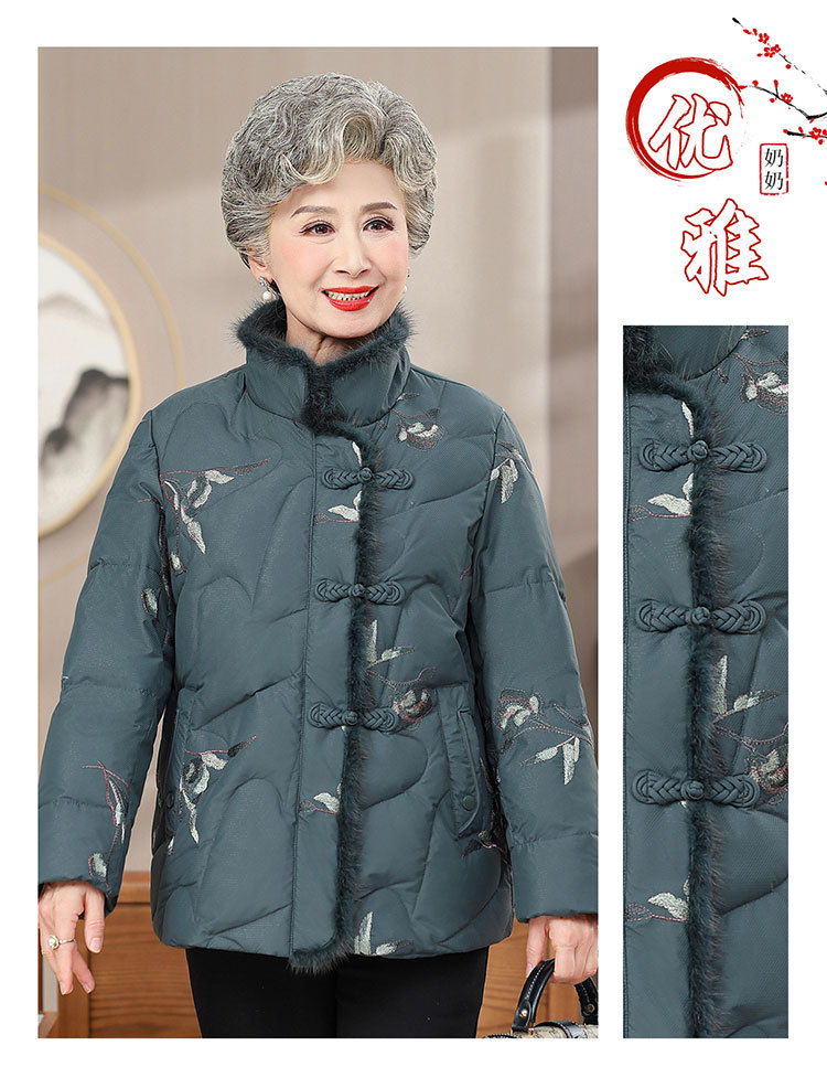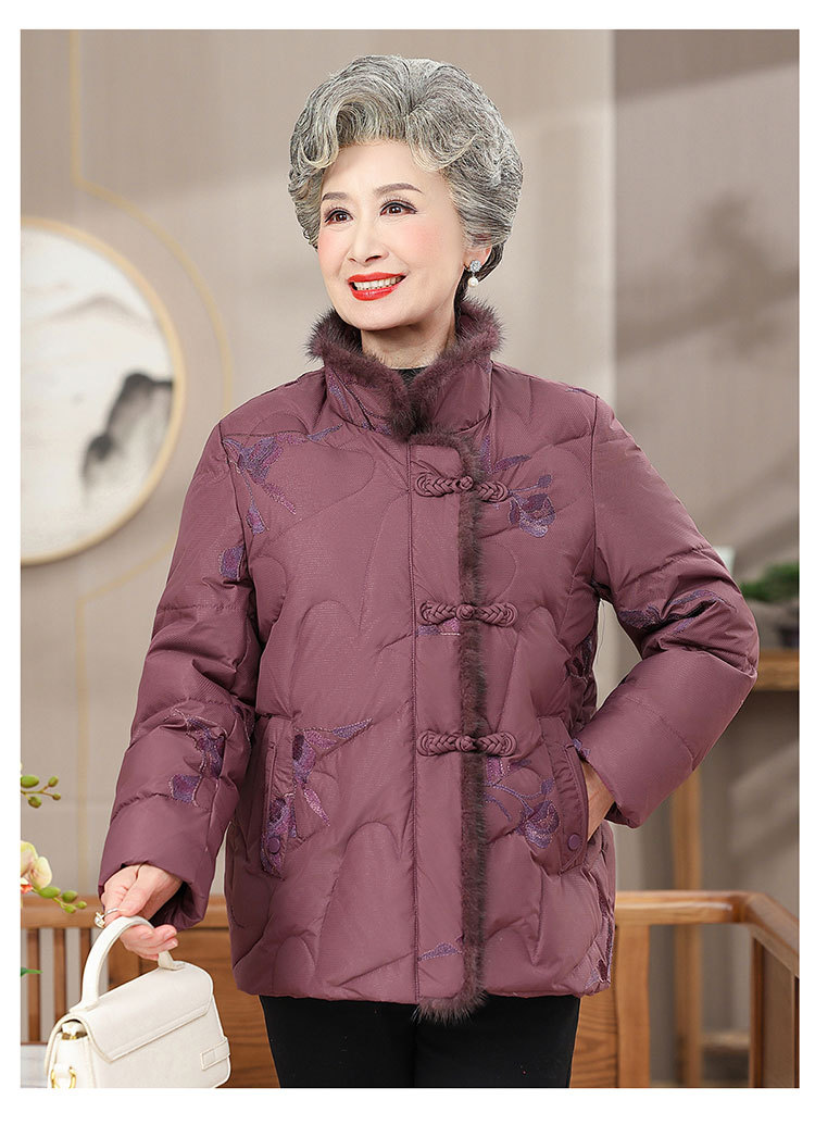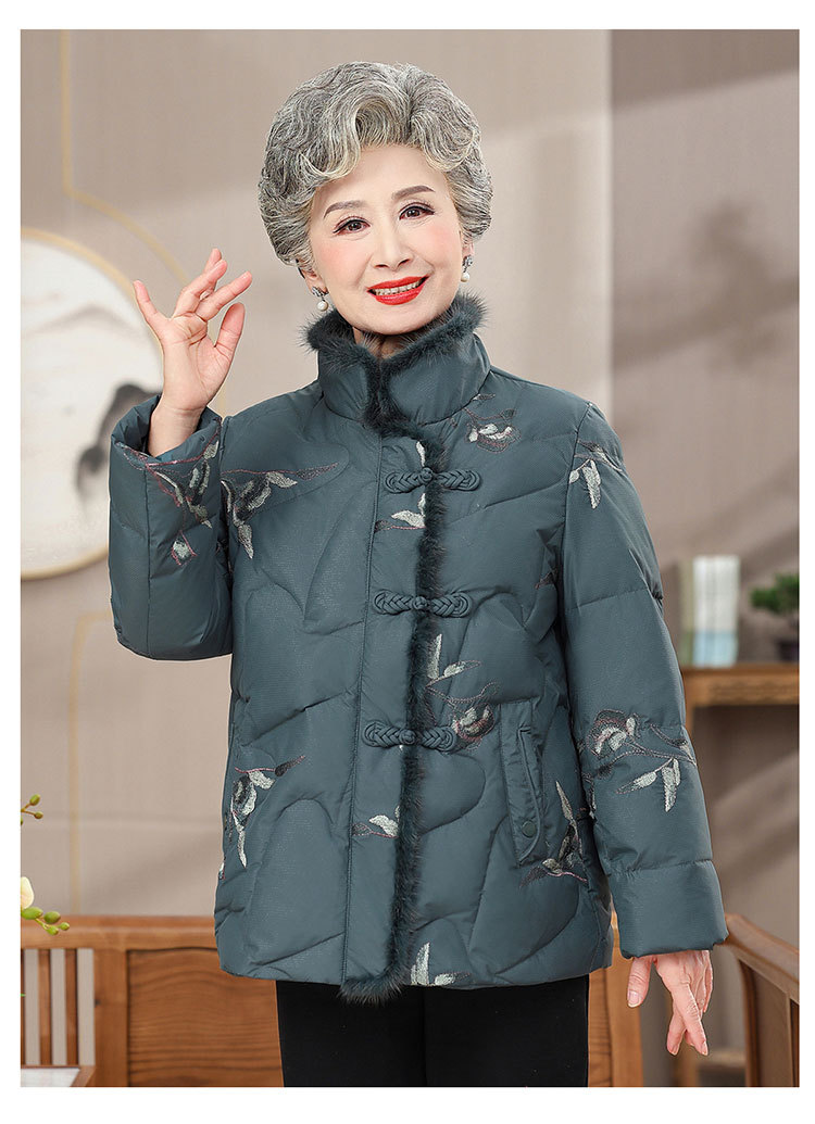 中高年のダウンジャケットの女性のショートタイプの60歳のお母さんの冬服の新型の小さいおばあちゃんの白鴨の国風のコート