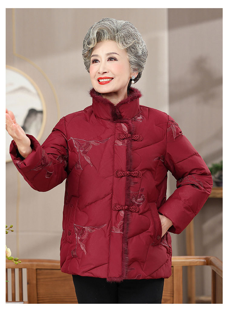 中高年の冬服の女性のダウンジャケットの短いタイプのおばあさんは80歳の70老人の服を着て保温のお母さんのコートを厚くします。