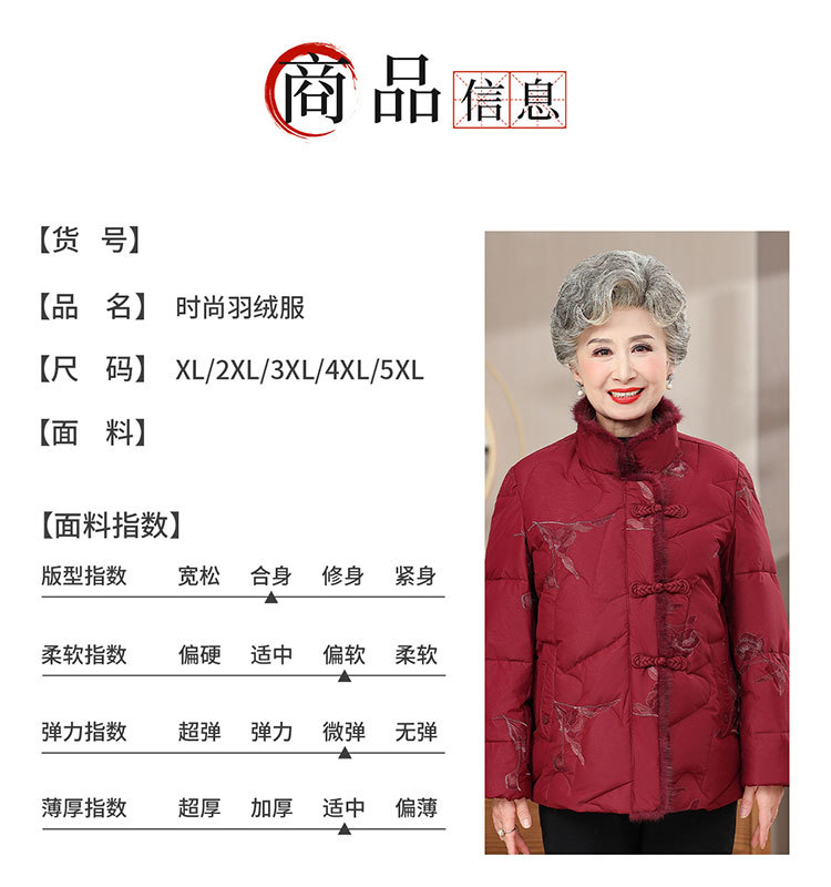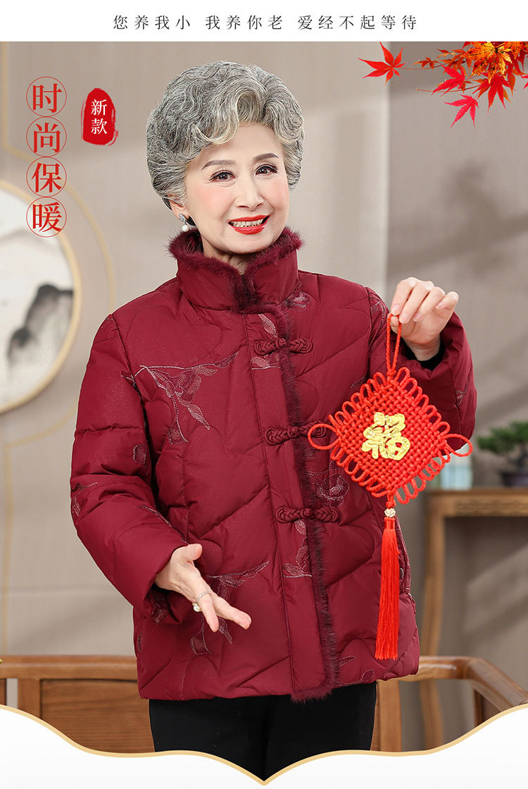 奶奶短款羽绒服70岁80老太太保暖时尚洋气棉袄老年人妈妈连帽外套