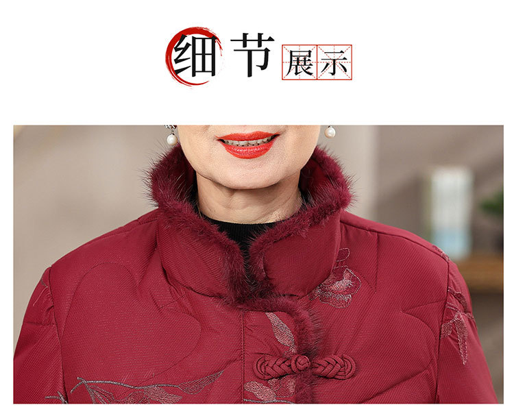 中高年のお母さんの綿入れの女性のおばあさんの冬の服のファッションの新しい中国風の綿服の奥さんのベルベットの厚い綿入れの上着