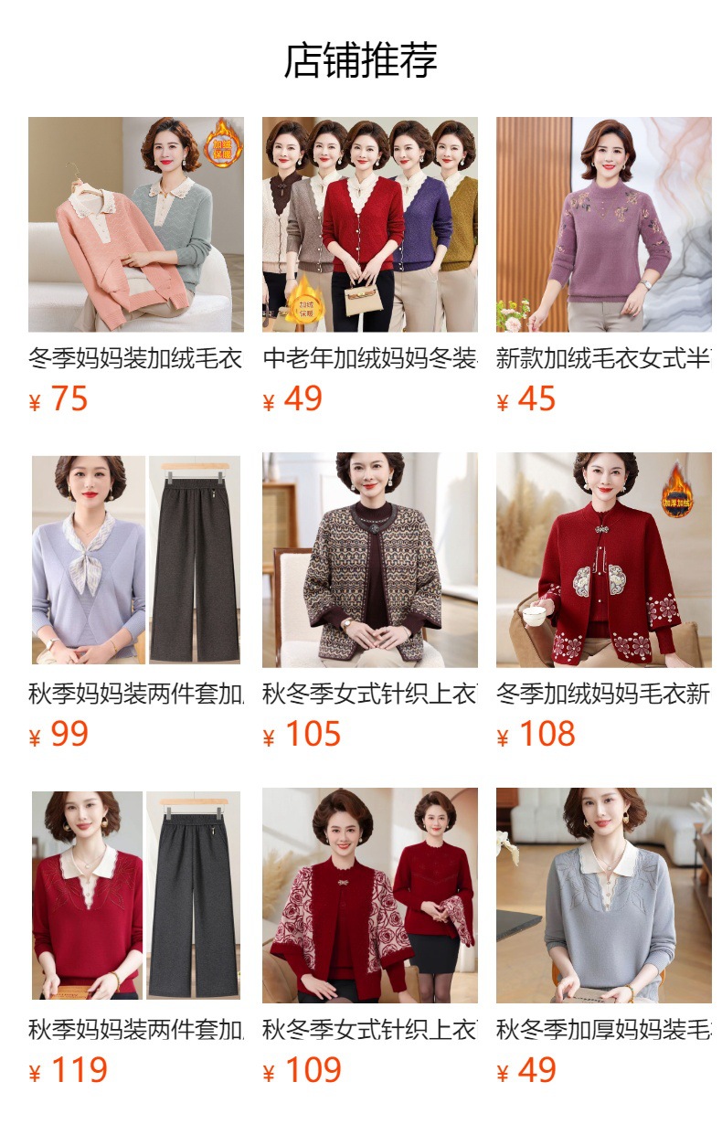 冬季加绒妈妈毛衣圆领加厚中年女士针织衫一体绒洋气婆婆保暖上衣