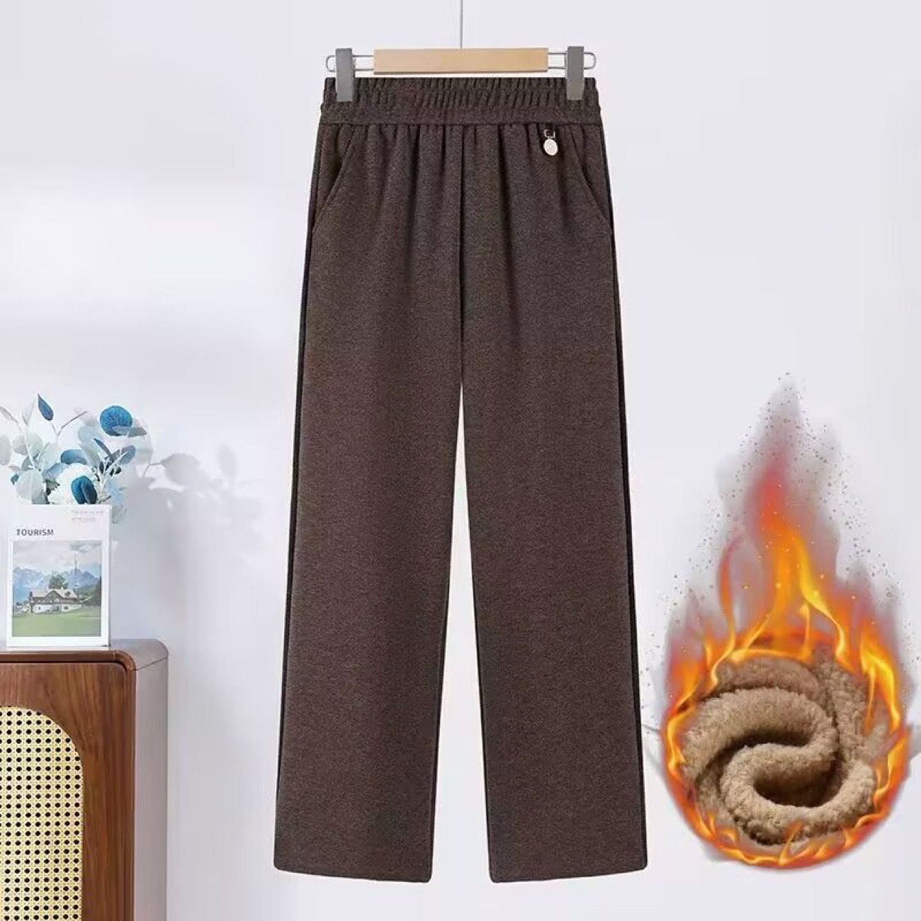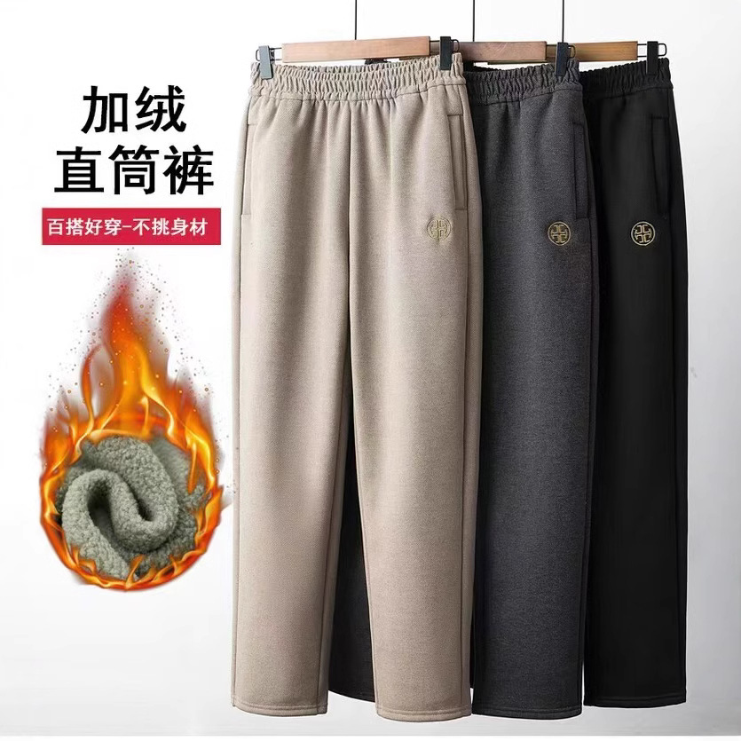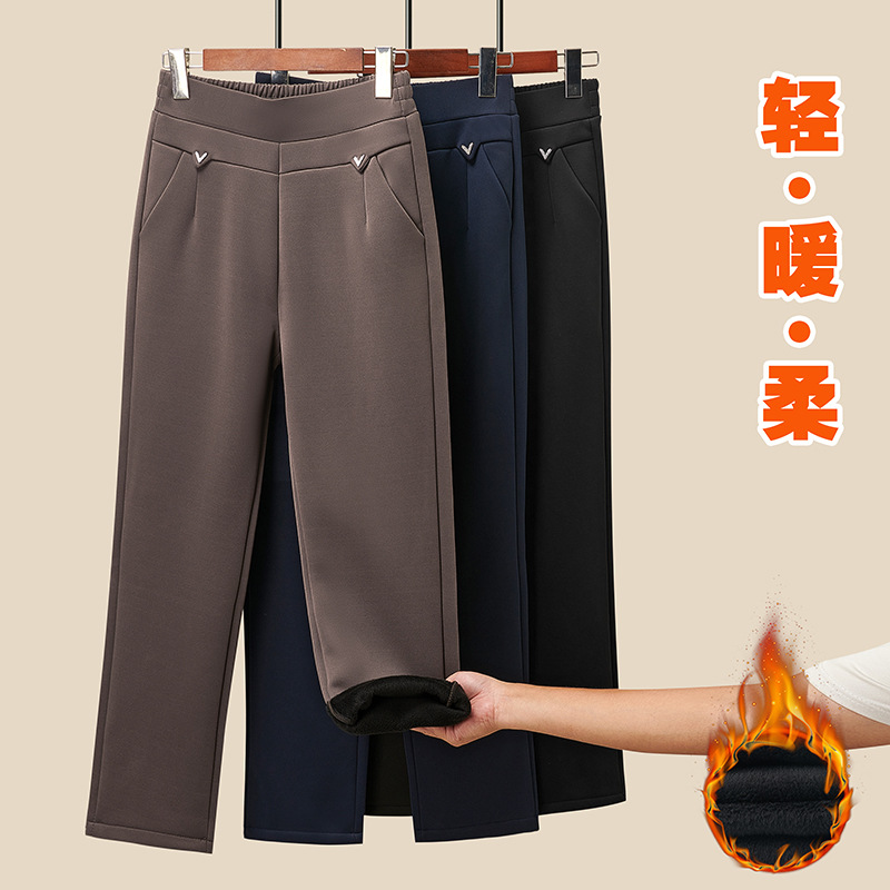 ママの春秋用ストレートパンツ2025新作中高年女性冬服裏起毛厚手カジュアルパンツゆったりワイドパンツ