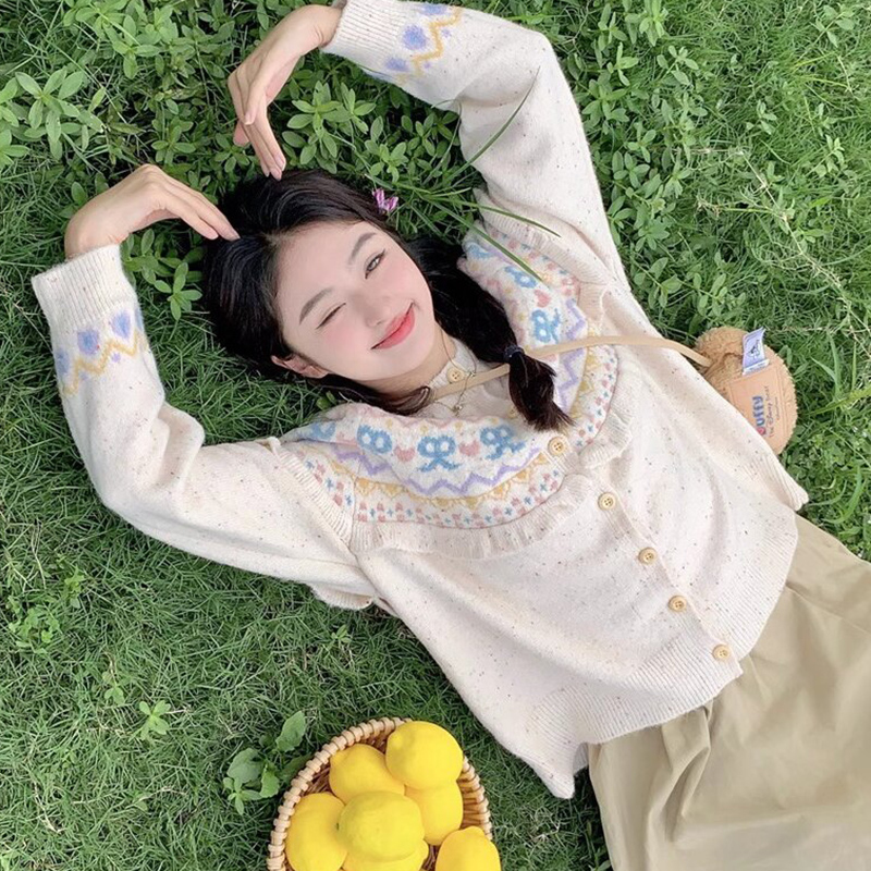 ミルクブルー優しい風柔らかいモチモチ高級感ニット女装カーディガン秋冬怠惰減齢セーター女子上着