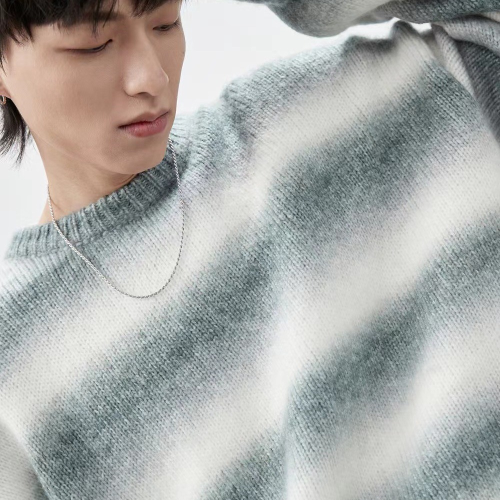 高級感がゆったりしていて、だらだらしています。男性は冬に保温ウールのニットのストライプのグラデーションの上着を厚くします。