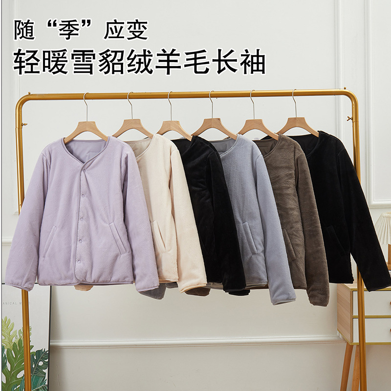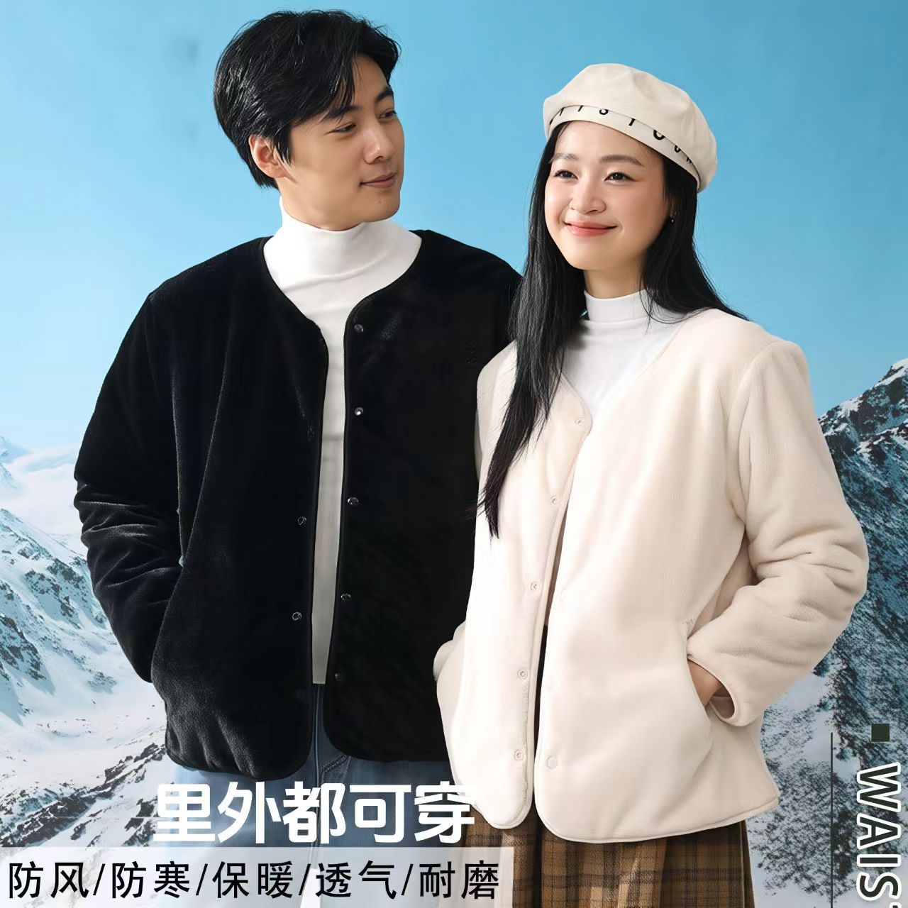秋冬ウール蓄熱保温服 男女兼用 カップル向け 長袖ジャケット 厚手裏地付き 学生用保温トップス 2582