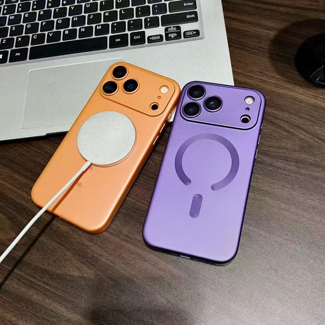 iPhone17 磁気電話ケース、メタルペイントつや消し Apple 16proMax オールインクルーシブ落下防止 15 保護カバーに適しています。