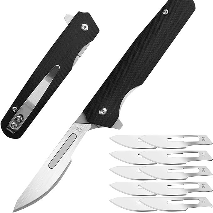 24番、60番ブレード通用手术替えナイフ耐腐食G10柄折りたたみナイフアウトドア狩猟実用ナイフ