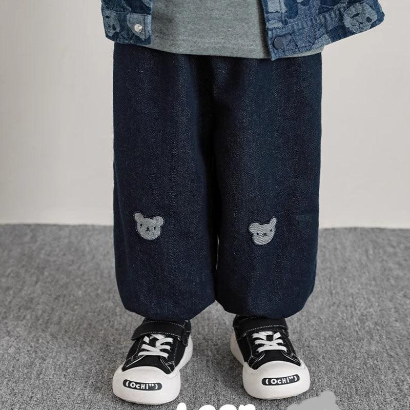 男の子用デニム裏起毛パンツ 秋冬 シンプルで万能なゆったり暖かいパンツ おしゃれな裾絞りゆったり裏起毛ダッドパンツ