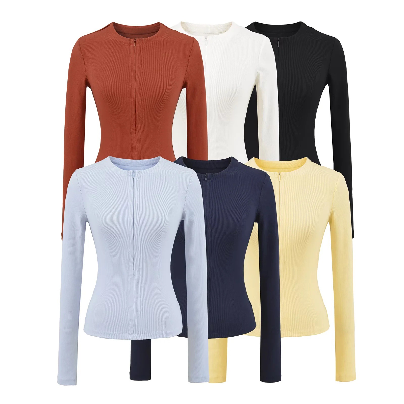 lulu高弹螺纹隐形拉链修身运动长袖T恤女秋季紧身半开襟健身上衣