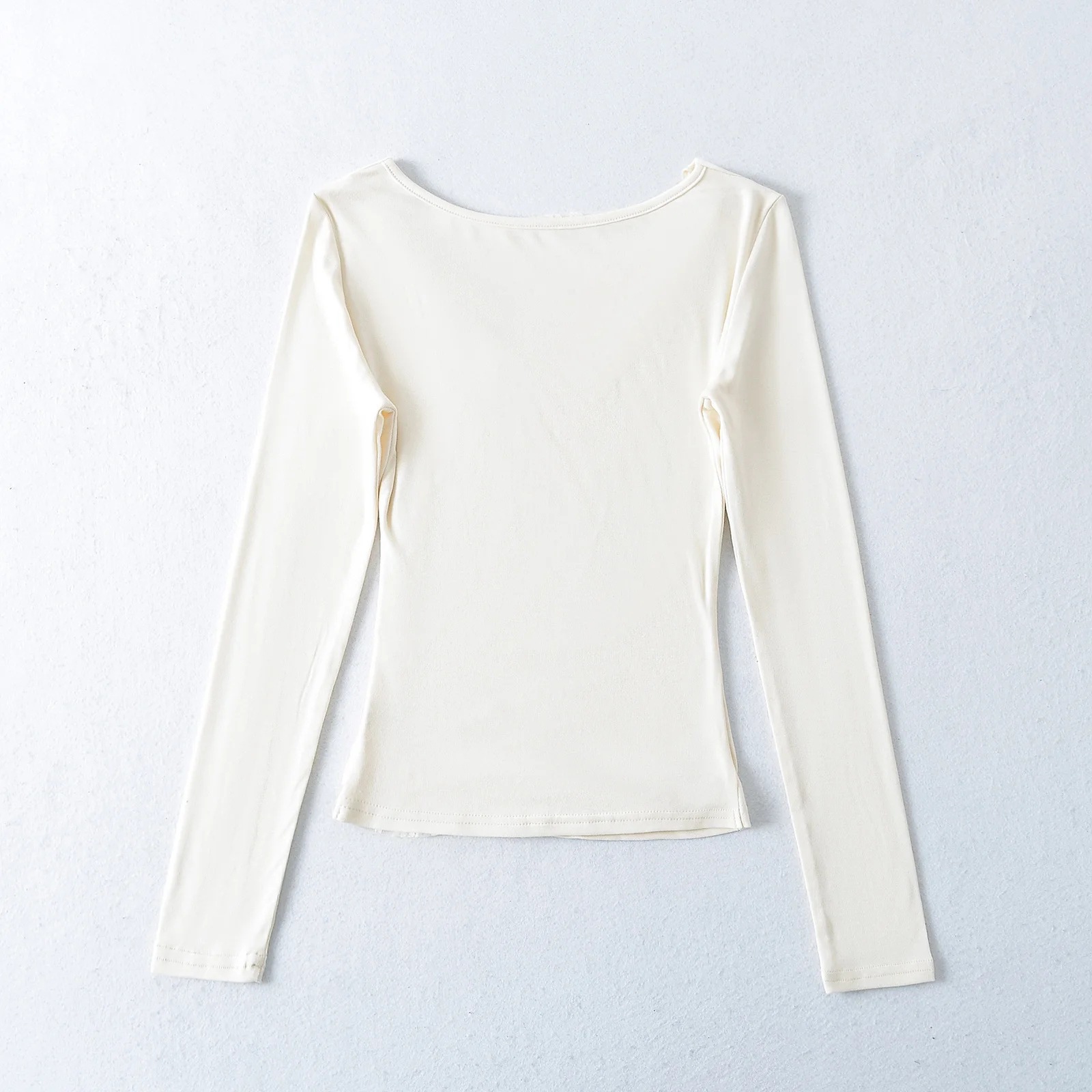 美式辣妹基础款方领包肩长袖T恤女春秋季修身显瘦内搭紧身打底衫