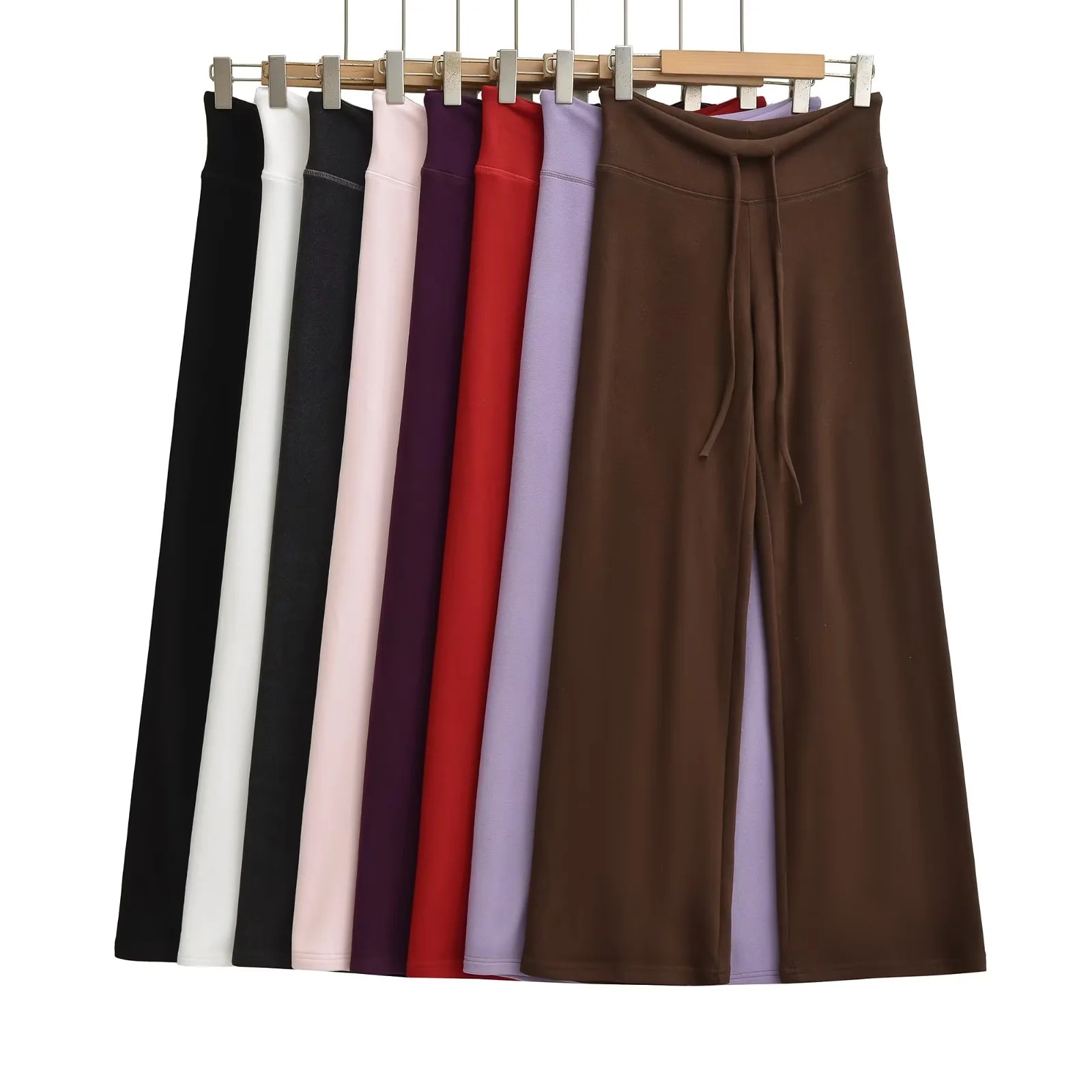 美式辣妹德绒保暖瑜伽裤女秋冬季抽绳系带直筒休闲运动拖地长裤