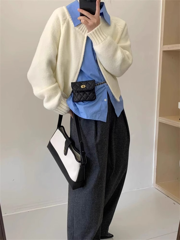 2022秋の新型外着優しい風の短いゆるいvネックセーターコートのカーディガンの女装上着