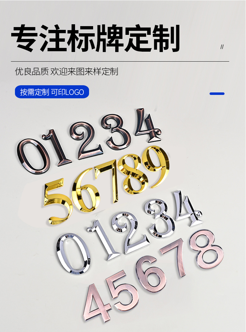 在庫あり ドア番号 デジタルナンバー デジタルサイン 金属製 5cm7cm12cm ホテル階層 3D電気メッキ番号 0-9