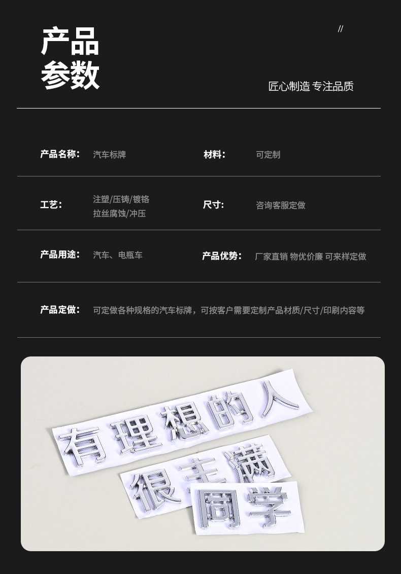 自動車標識標識カスタムABS射出アクリルステンレス電気めっきナンバープレート金属銘板カスタムロゴ