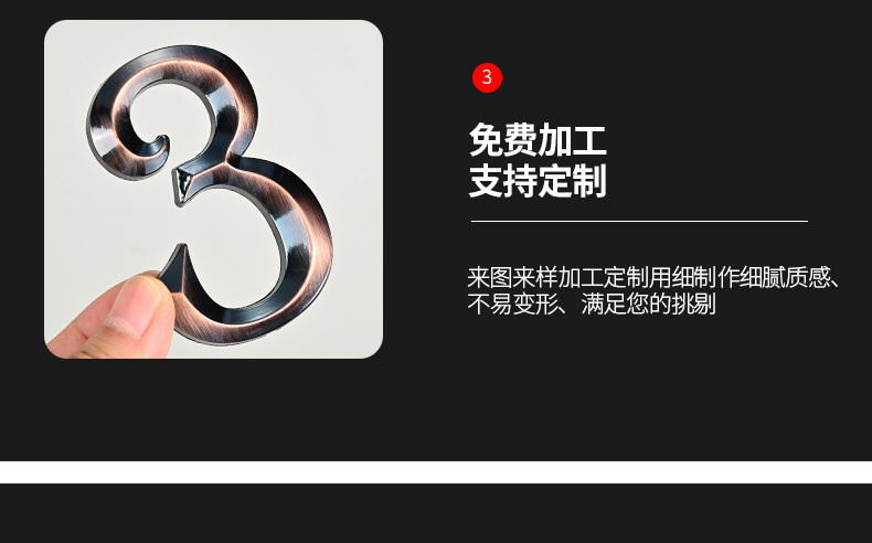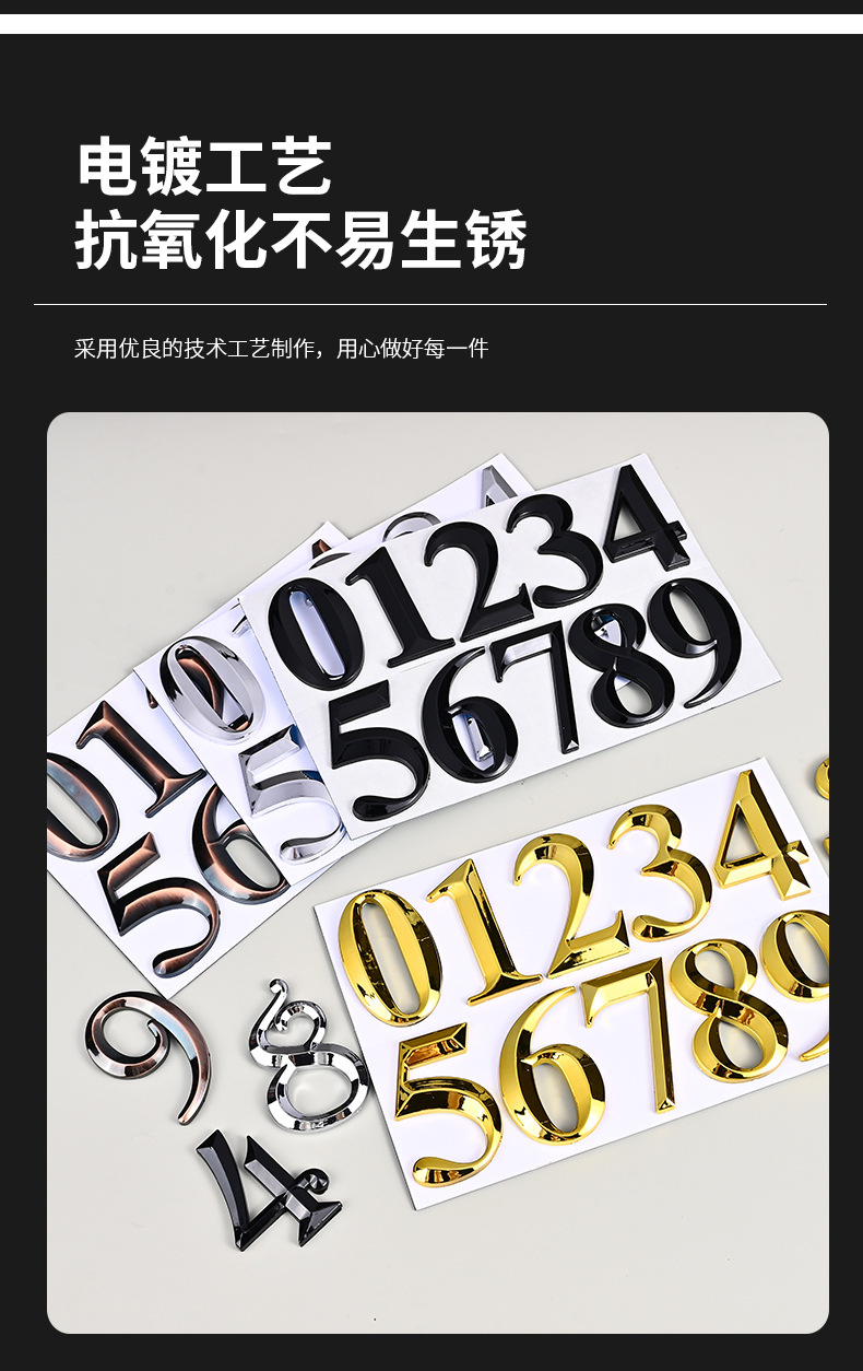 電気めっきのデジタルの札の4色はホテルのホテルの番地の立体のデジタルの金属の札の卸売りを選択します。