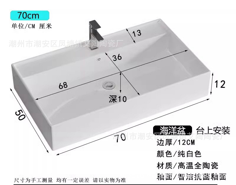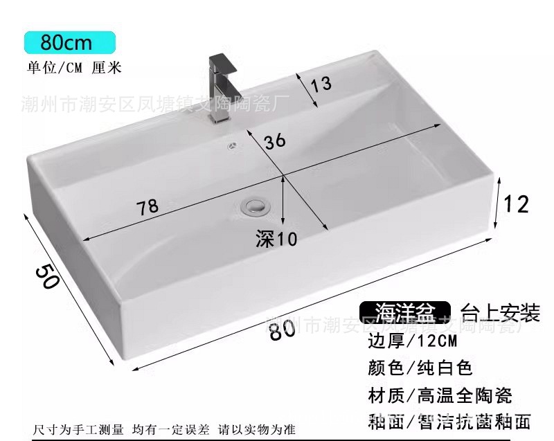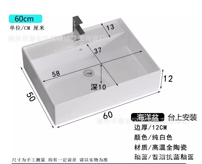 陶瓷洗手盆17CM深盆胆海洋盆四边挡水洗手台盆卫生间浴室柜台上盆