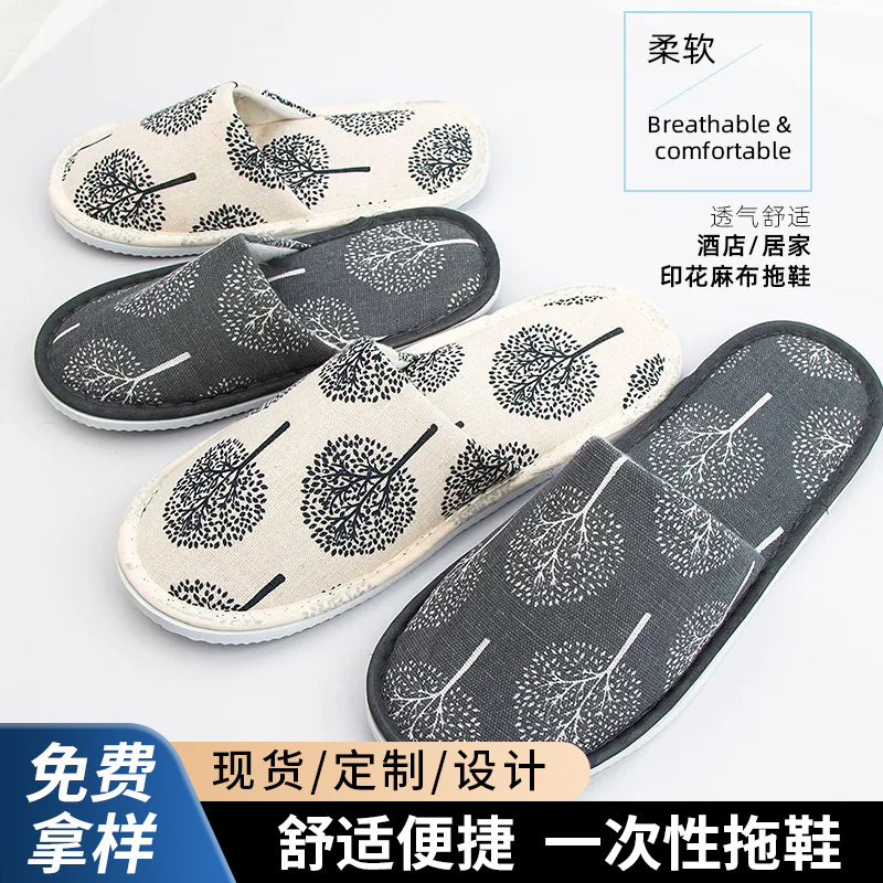 星付きホテル用使い捨てスリッパ、特製プリント麻布、民宿、ホテル、美容院、家庭用、おもてなし、洗面用品