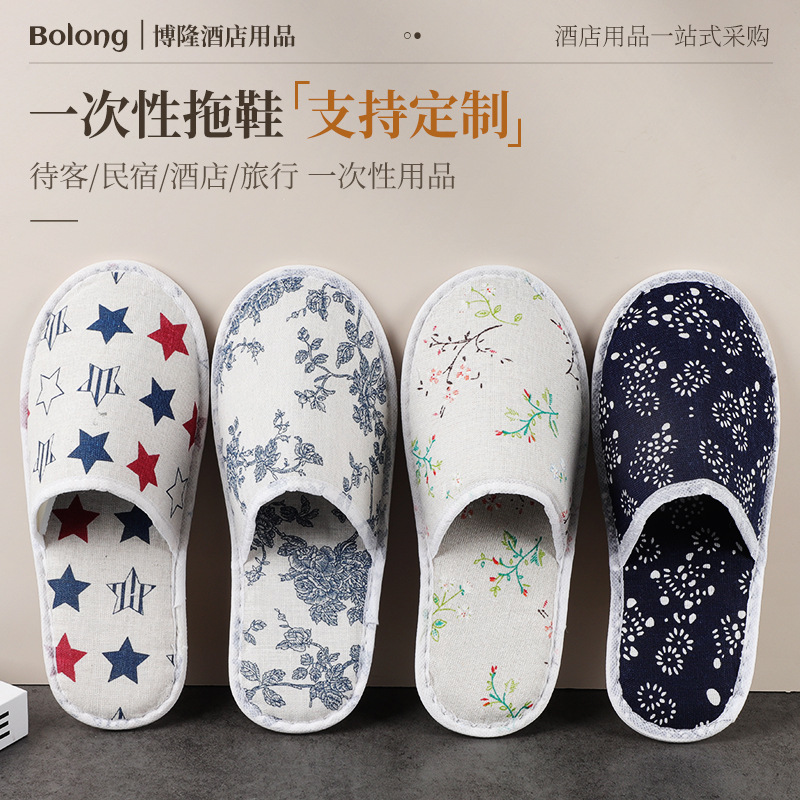 星級ホテル使い捨てスリッパ、プリント麻布、民宿、家庭用、美容院、出張、旅行用携帯スリッパ