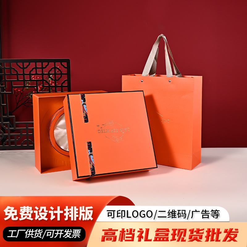メーカー卸売り通用西洋参元貝紅参花鹿茸アワビ燕窩礼箱オレンジ包装箱現物