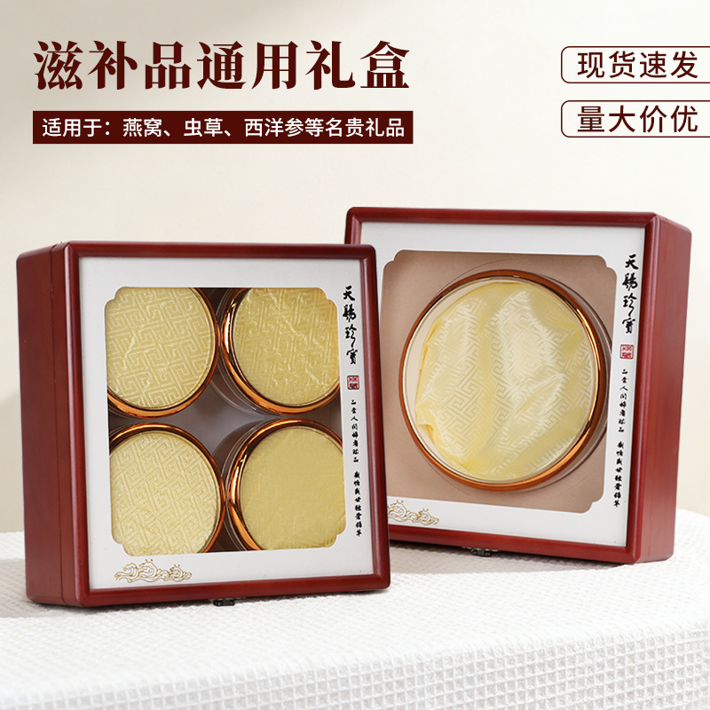 天赐珍宝四拼滋补木质礼盒包装定制虫草西洋参燕窝石斛保健品木盒