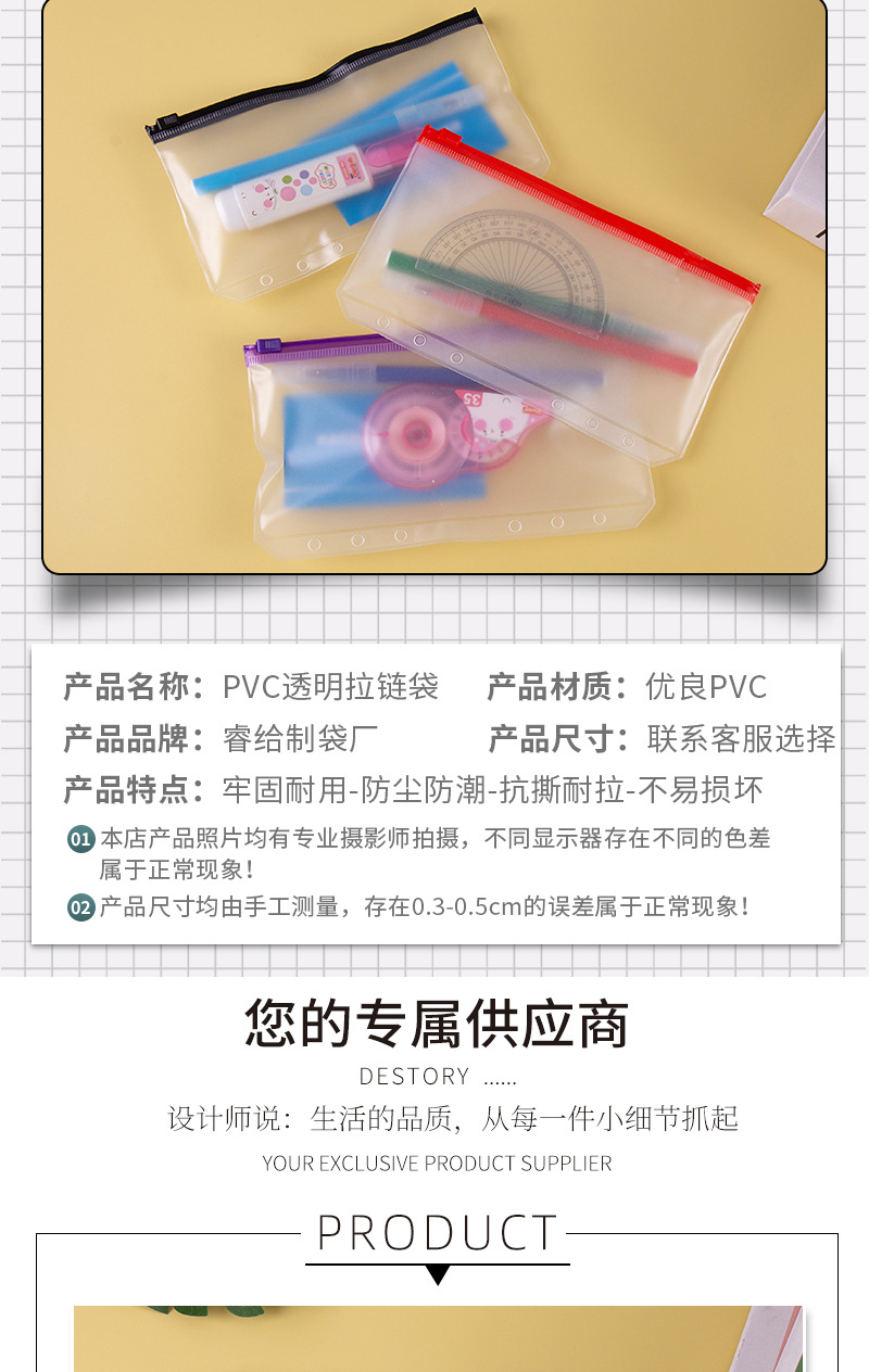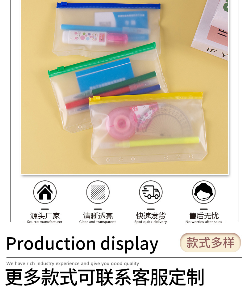 PVC透明チャック袋プラスチック試験文房具書類袋フロスト防水学生用品メーカー卸売り