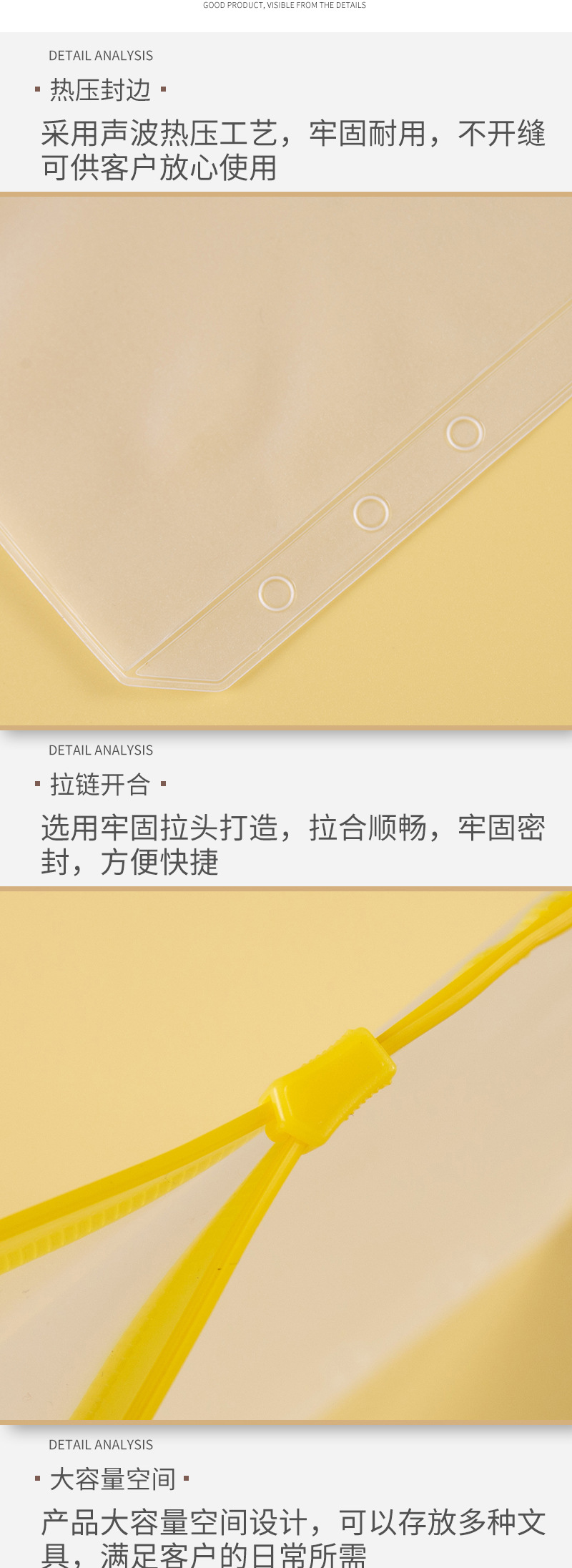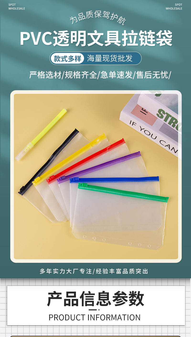 新型PVCファイル透明エッジファスナー袋ファイル資料袋自封防水事務用品メーカー卸売り