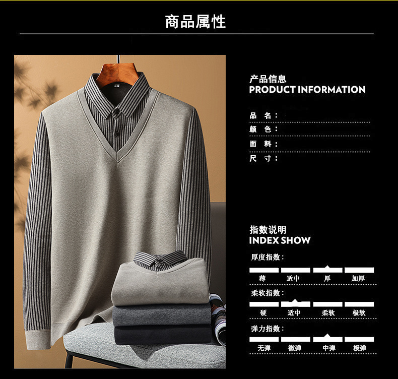 外贸批发亚马逊鼎朗堡8627-P29假两件毛衣男秋冬季衬衫领加绒加厚